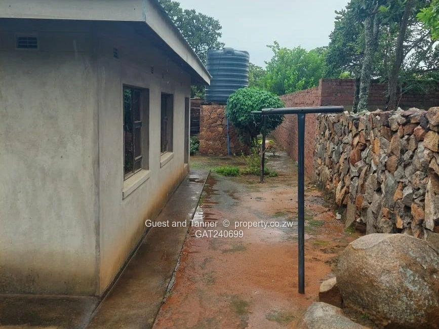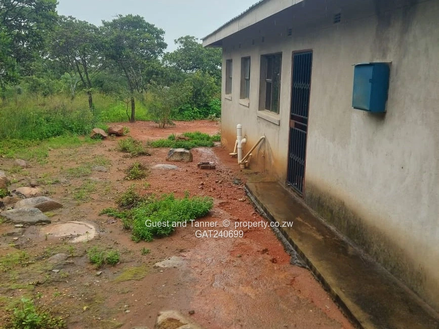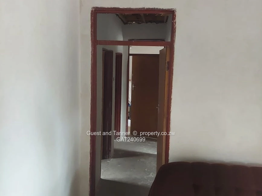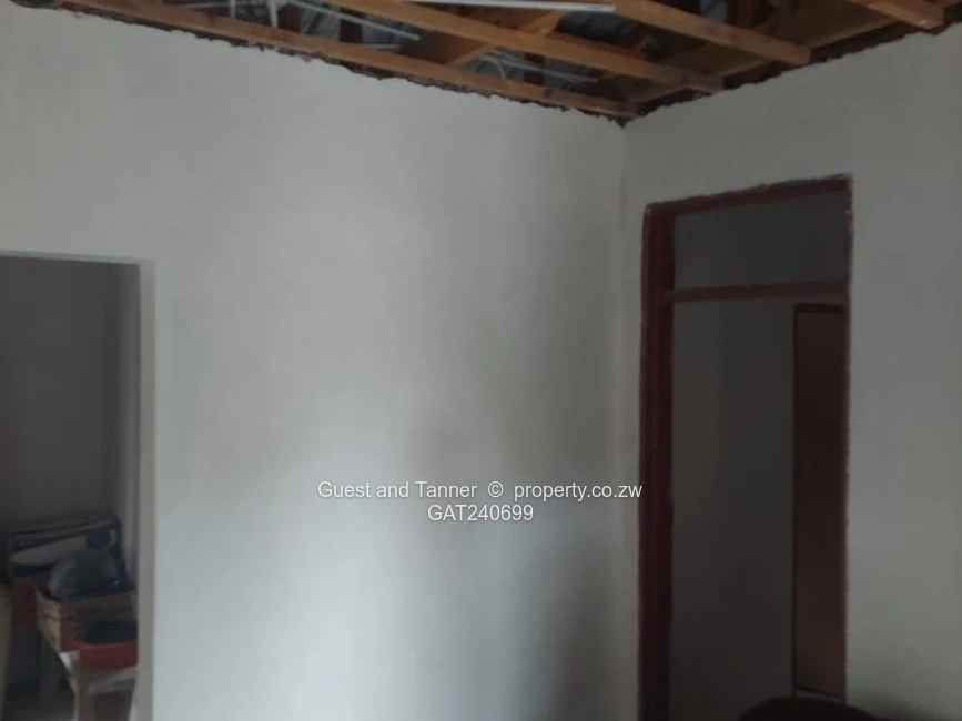 The cottage is plastered and requires ceiling installation and floor finishes. One of the bedrooms is ensuite. All electrical and plumbing fittings have already been completed. A functional 5,000-litre water storage tank is installed on the property. The stand is walled on one side and offers ample space for the construction of a main dwelling.
