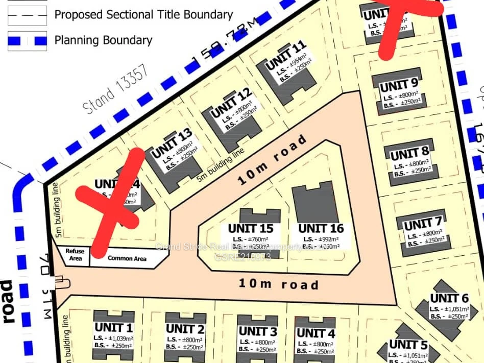 Subdivision permit ,Certificate Of Compliance now available. Fully walled with solar street lights and communal borehole .Only 2 stands left. There are 3 different house plans to choose from.