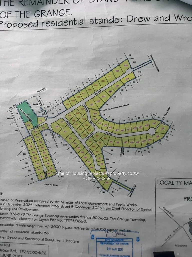This stand is fully serviced with a sewer system in place, making it ideal for phased development or immediate building. The included site layout plan indicates a well-planned estate with multiple residential stands, road networks and an open recreational space, underscoring strong potential for subdivision into smaller plots or a bespoke family compound. Close to established Harare North amenities, schools and transport routes, the location offers both convenience and capital growth prospects.