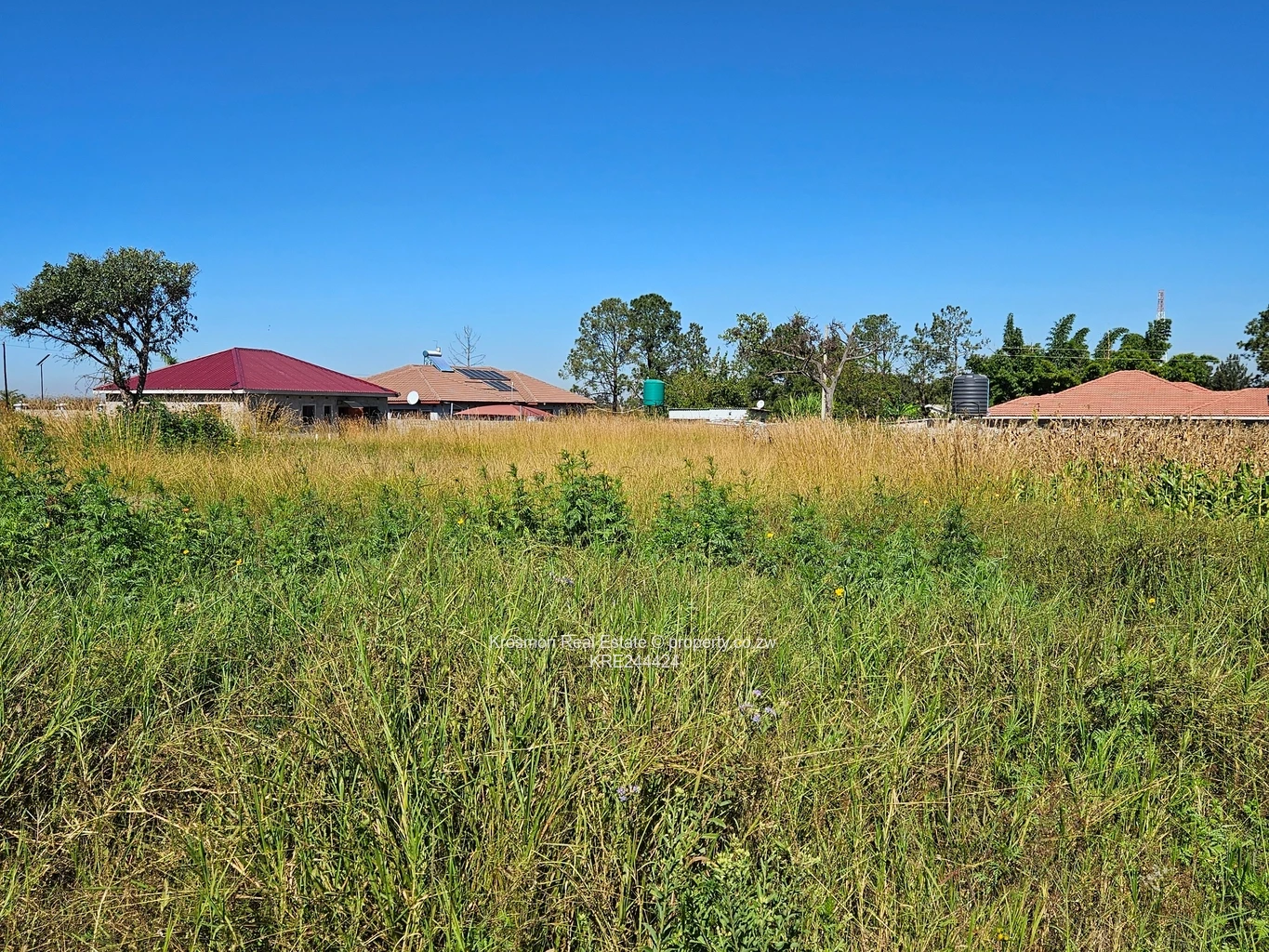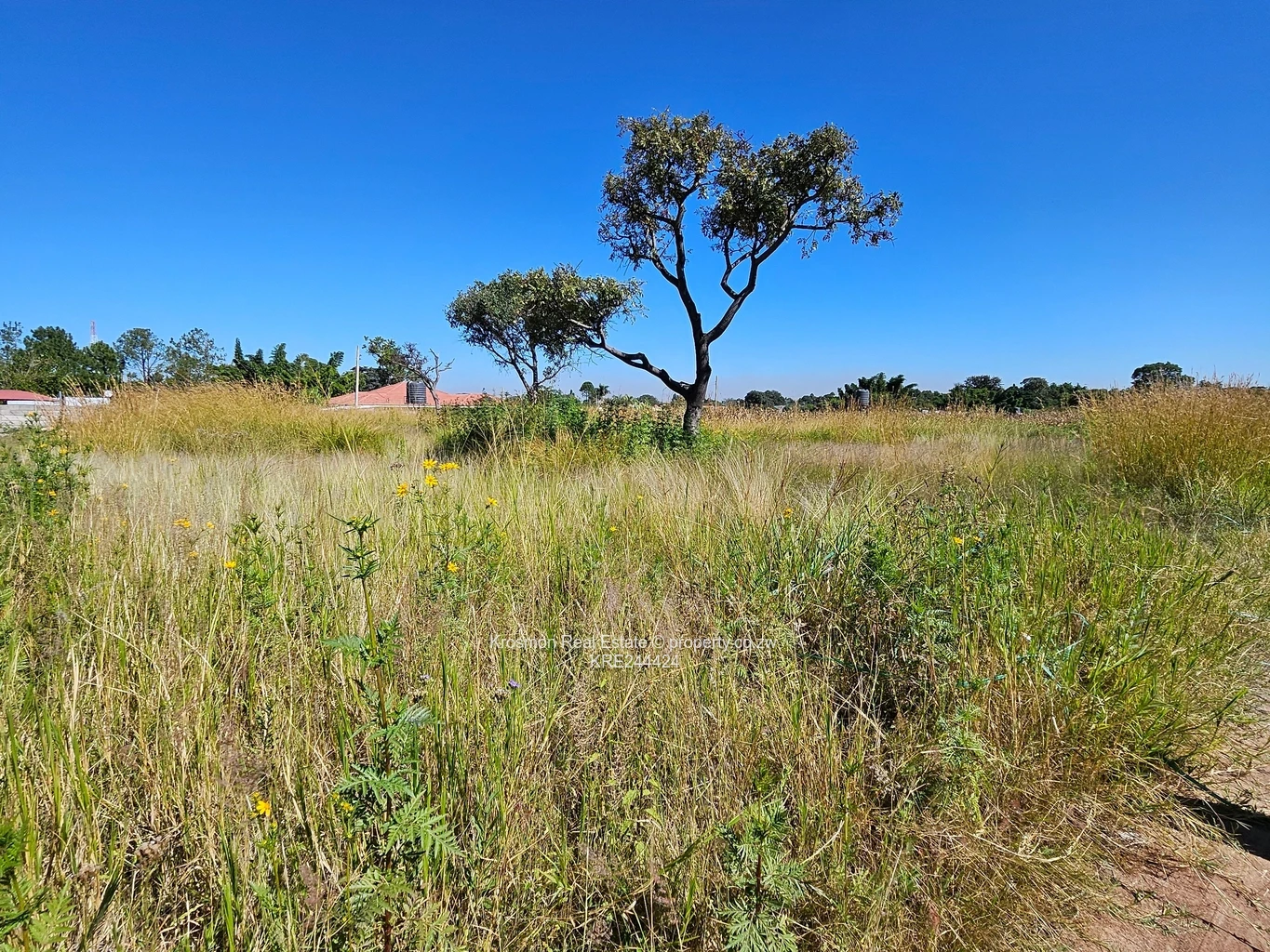 Exceptional 2,084 m² stand in Airport, Harare South — a rare, level parcel with Main Road frontage and excellent development potential. As seen in the photos, the site is covered in natural grass with a few mature trees, clear sightlines to neighbouring red-tiled homes and boundary walls, and power poles visible along the road. An adjacent cultivated garden/maize plot highlights fertile, usable soil and a semi-rural feel within an established suburb. Key services are present: municipal water, tarred roads to the area with some gravel access and access control in the neighbourhood for added security. Ideal for a family estate, multi-unit rental development or long-term land bank; generous frontage makes subdivision or a striking entrance easy. Secure this strategically located stand close to transport routes, amenities and the airport — contact us for viewing and full service details.