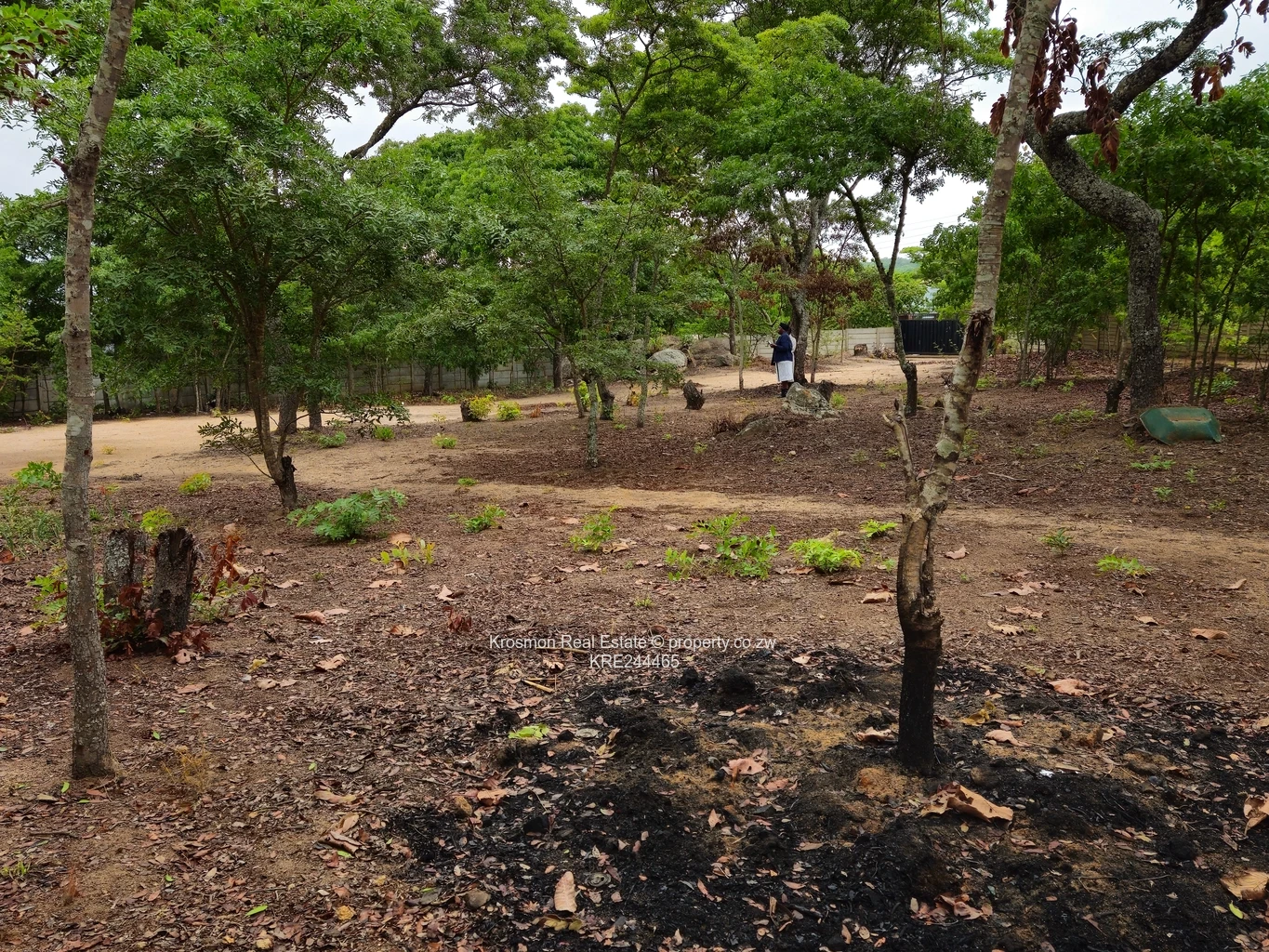 Prime 2,330 m² residential stand in Marondera, Mashonaland East — a rare, level parcel in a secure, access-controlled neighbourhood with easy approach via well-maintained gravel roads. The photos show a generous, tree-dotted site with mature indigenous shade trees creating private pockets and a natural, park-like setting ideal for a family estate, garden or multi-unit development. A solid boundary wall topped with razor wire provides immediate perimeter security, and a small lock-up outbuilding/shed at the rear gives practical storage while you plan your build. The ground is mostly cleared with compacted earth and clear building lines visible, making site prep straightforward. Enjoy the blend of town convenience and tranquil greenery — bring your architect and envision a spacious home with garden, orchard or rental potential on this well-located Marondera stand. Contact us to view and discuss subdivision or design possibilities.well built up houses..a quite treeous area