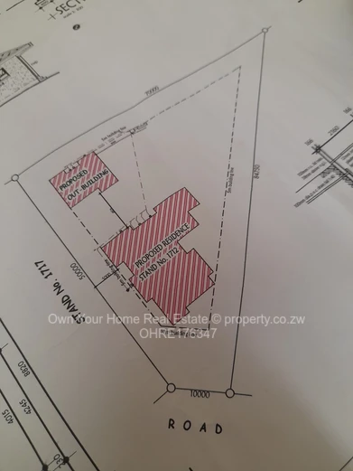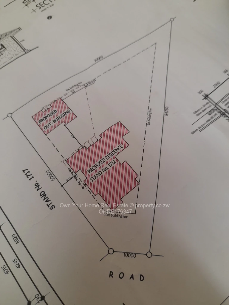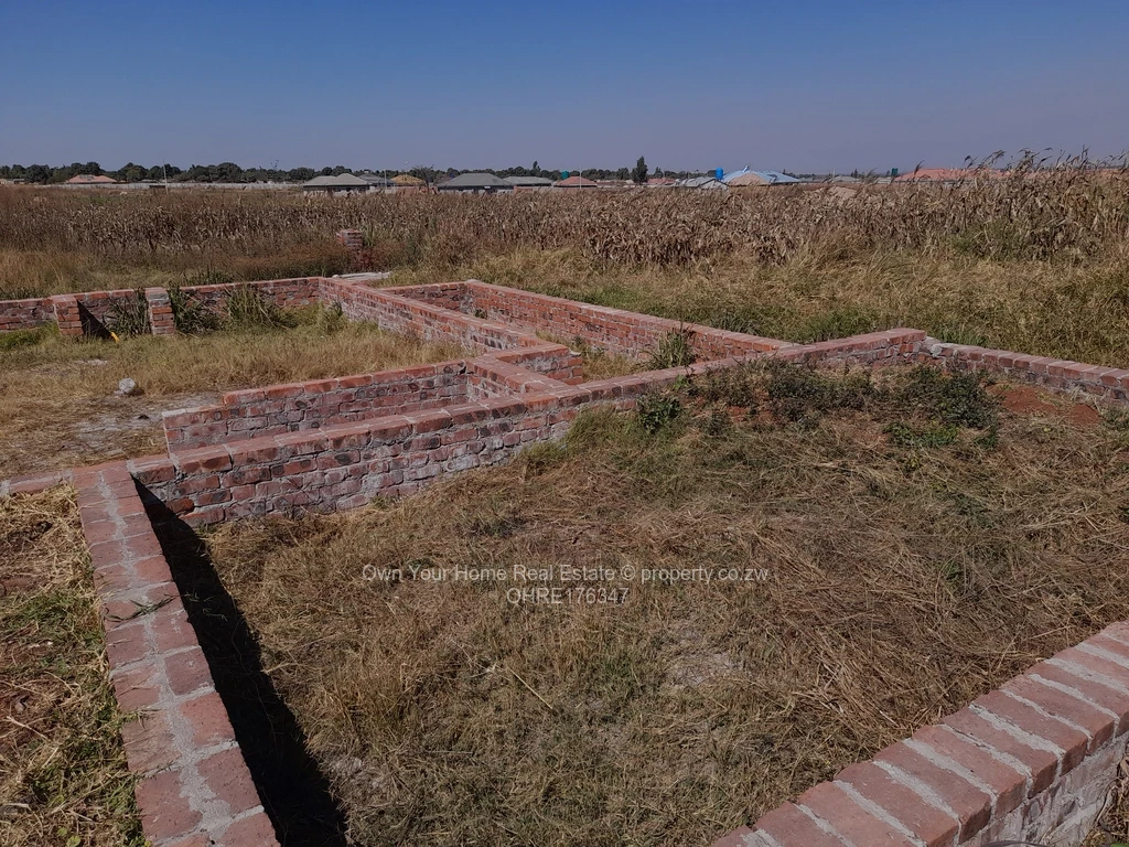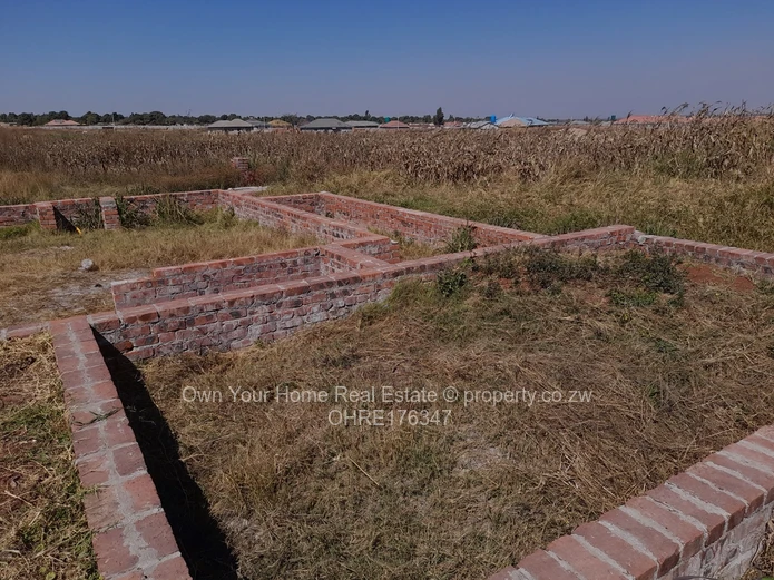 Incomplete house for sale at box level, Stand measuring 2300sqm, zesa available. Plan also has a cottage. Developer cession