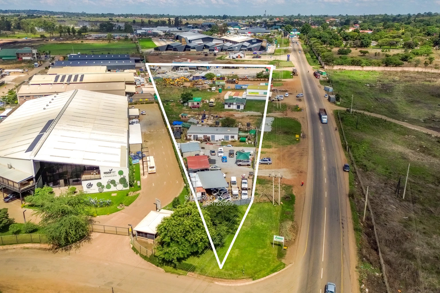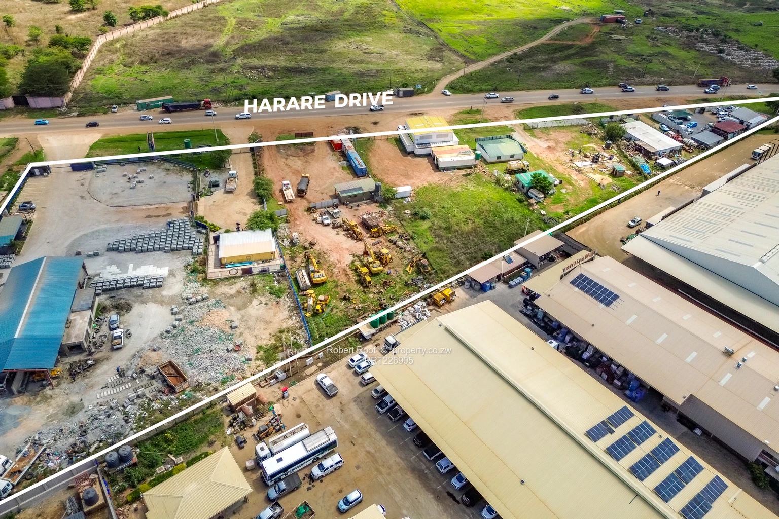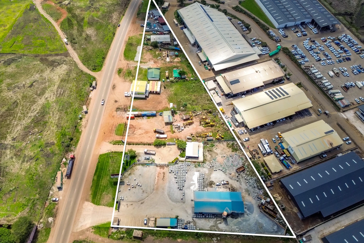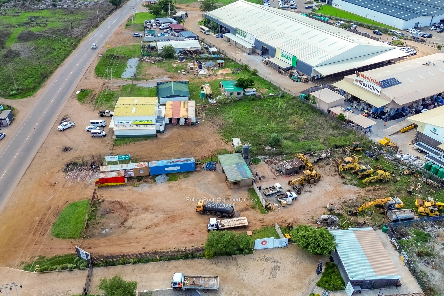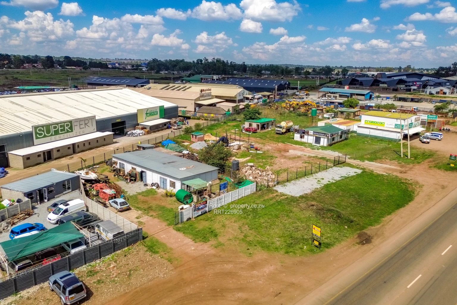 Invest in this incredible land opportunity spanning 14.41acres for sale in Pomona, Harare. The property is ideally suited for commercial or industrial use, currently featuring multiple tenanted large buildings that already house a variety of businesses. Brightly painted containers offer both storage and retail options for continuity of business showcasing the versatility of this space. Available for sale is the land.