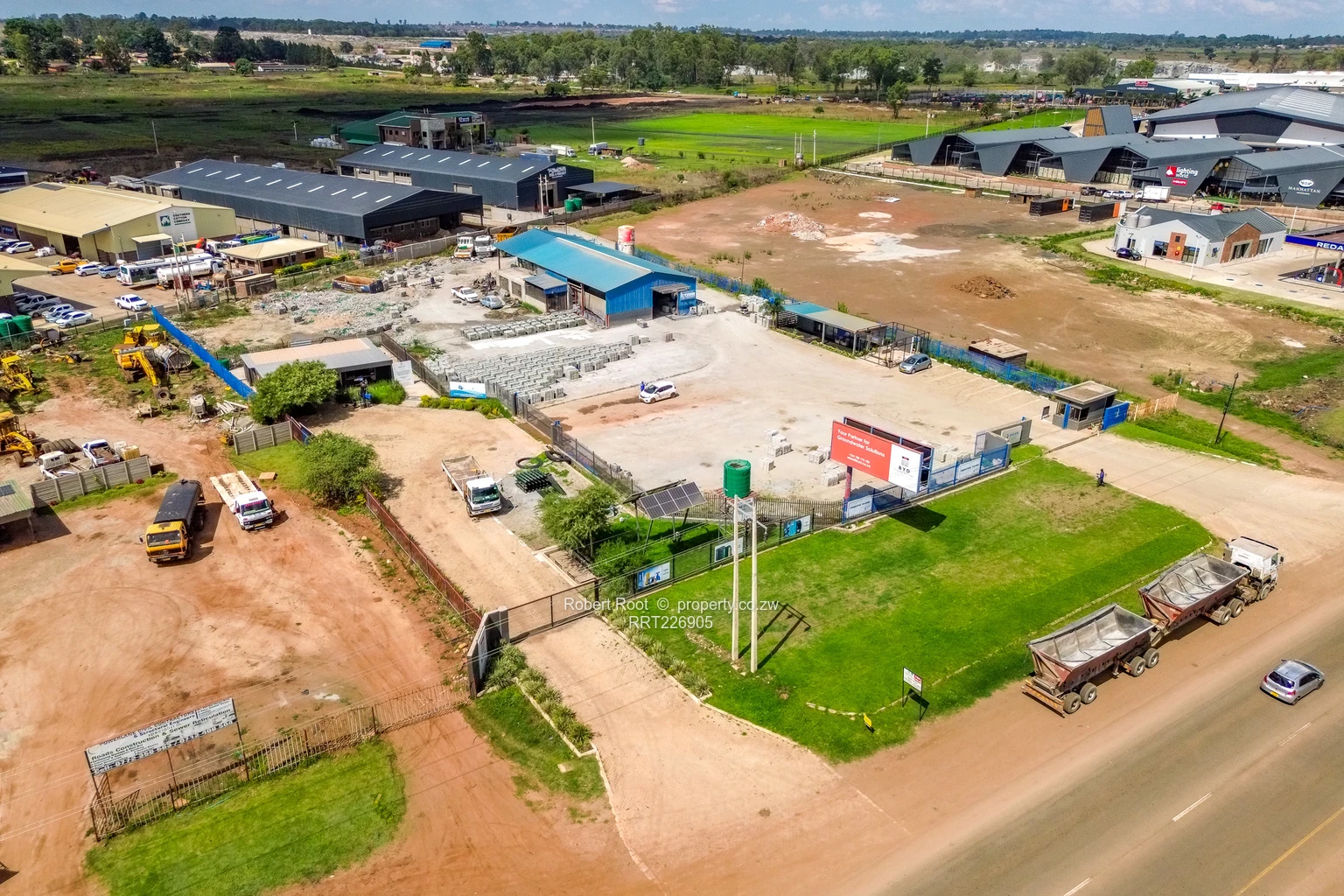 The site is accessible via a well-defined road, essential for facilitating large vehicles. Practical amenities include a green water tank and well-maintained paving around the area, creating a professional and tidy environment.