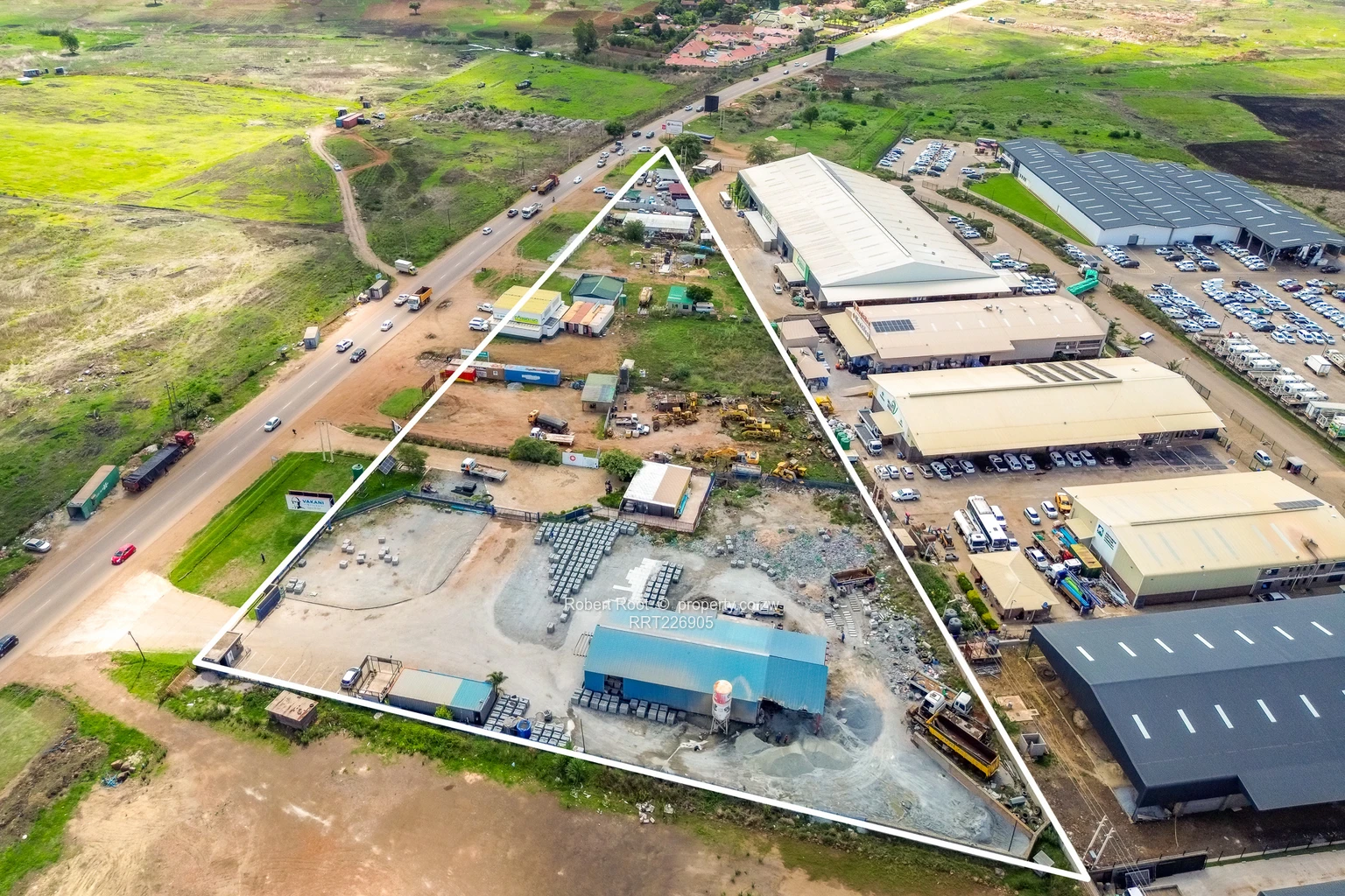 Surrounded by a semi-urban landscape, the property currently exhibits a mix of industrial, retail, and agricultural functions. Its offering of one title deed, direct road access, and water supply further enhances its potential. Don't miss out on this prime real estate investment opportunity in a growing area.