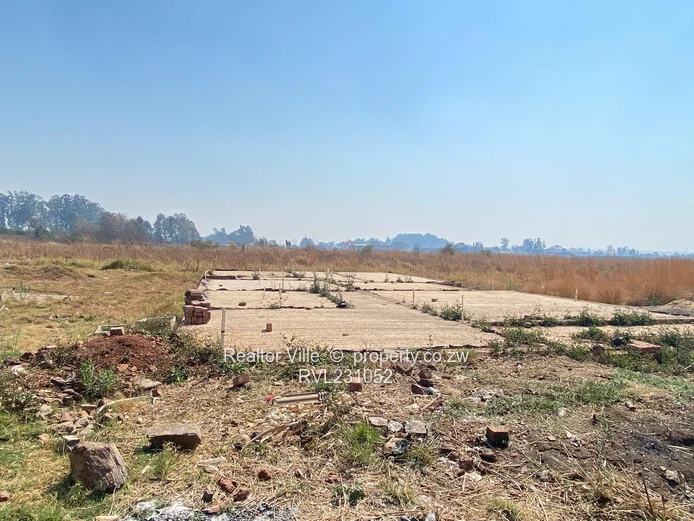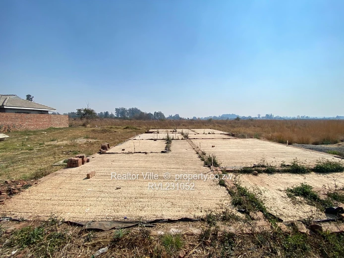 Prime 366 m² stand for sale in Tynwald, Harare West — an exceptional opportunity to build your dream home or secure a solid investment. This level, well-situated parcel enjoys direct access via tarred roads and is connected to the municipal sewer system, making it ready for fast development. Photographs show a clear, sunlit site with existing concrete slab remnants and defined boundaries, reflecting an established residential setting and neighboring builds that add to the suburb’s appeal.
