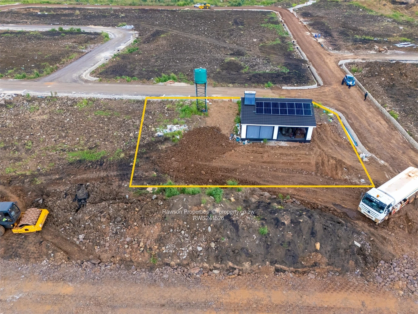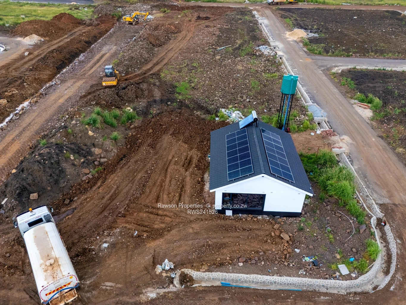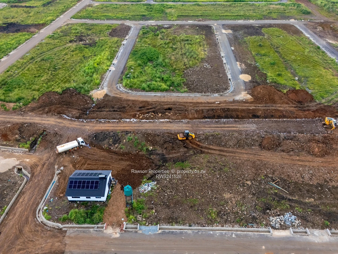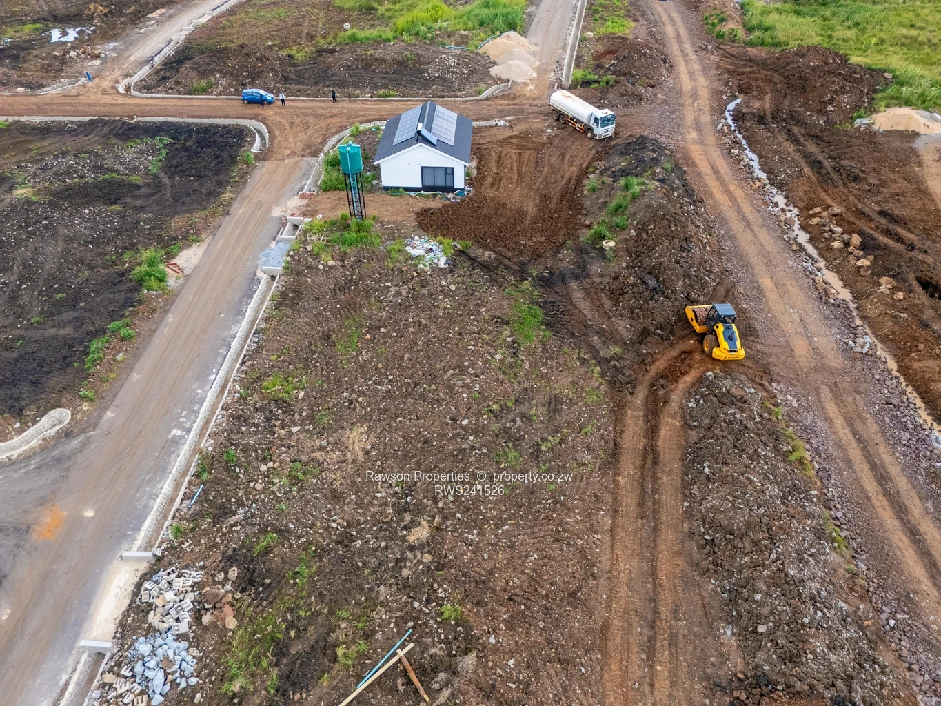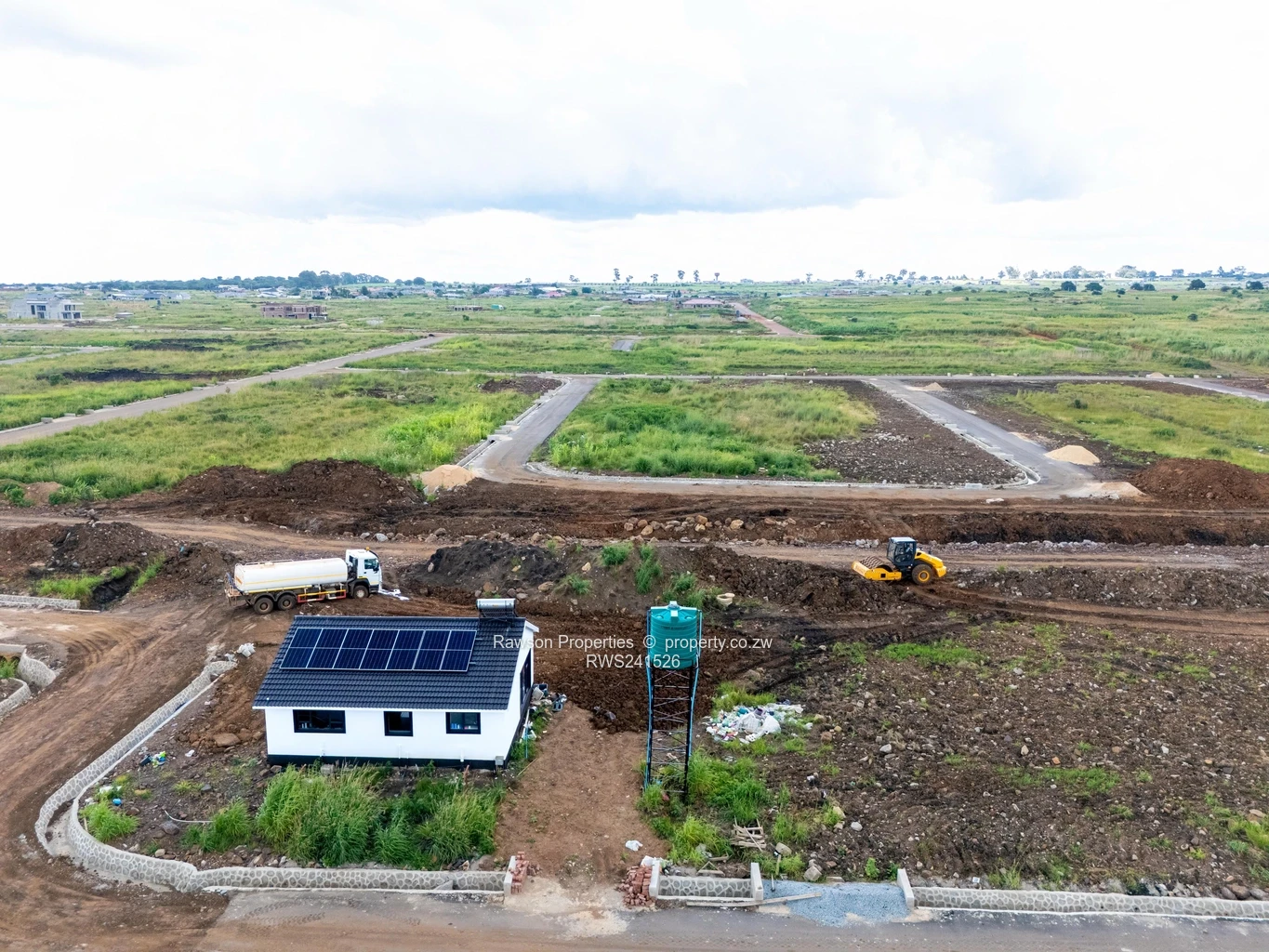 Prime 550 m² stand in Pomona, Harare North — perfect for a family home or astute investor. The photos show a level, fully demarcated plot with a neat modern show house on site fitted with rooftop solar panels and an elevated water tank, so you can see exactly how a compact, energy-smart dwelling sits on this stand. Surrounding images reveal a fast-developing subdivision with formed access roads, clearly laid-out erven and stormwater channels — ideal for quick build or rental rollout. Open, green outlooks give pleasant views and plenty of natural light. This stand offers the convenience of a ready-to-develop parcel with visible infrastructure in place and a completed show unit to inspire your plans. Contact us to arrange a viewing and secure this opportunity in growing Harare North.