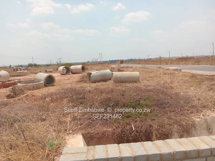 Prime 800 m² residential stand for sale in rapidly developing Ruwa, Mashonaland East — ready for immediate development. As seen in the photos, the plot fronts a well-constructed tarred road with painted kerbs and concrete drainage channels, giving excellent street appeal and easy vehicle access. Municipal water and sewer infrastructure are on-site: visible manhole covers, an H water marker and concrete sewer culverts/pipes confirm services are in place nearby, and electricity poles and lines run along the road. The land is level to gently sloping with clear, unobstructed views across the neighbourhood and ideal building lines for a single-family home or investment project. Surrounding properties show new builds and construction materials on hand, signalling a growing, secure suburb with strong resale potential. Quiet, well-connected and infrastructure-ready — a practical, low-risk plot for families or developers looking to build in Ruwa. Arrange a viewing today to inspect the drain outlets, service points and exact plot boundaries.