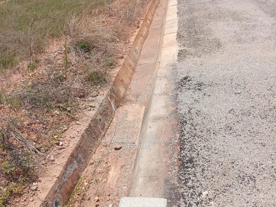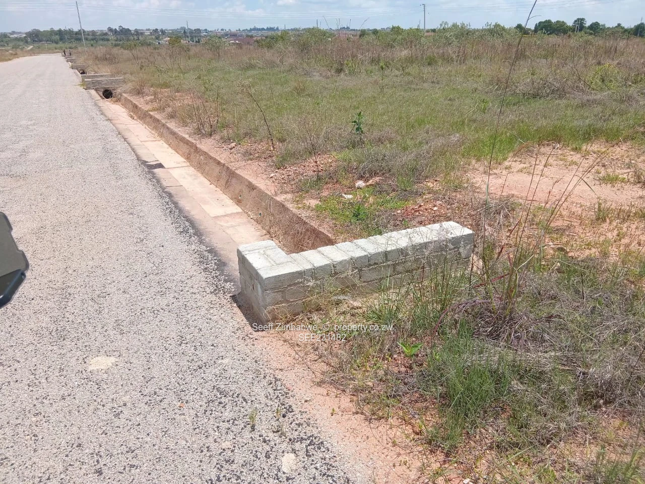 The stands enjoy excellent road frontage along a well-built tarred road complete with painted kerbs and concrete drainage channels, offering great street appeal and smooth vehicle access. Municipal water and sewer infrastructure are already in place: visible manhole covers, an H water marker, and concrete sewer culverts/pipes confirm reliable service provision. Electricity poles and power lines run along the frontage, ensuring easy connection.