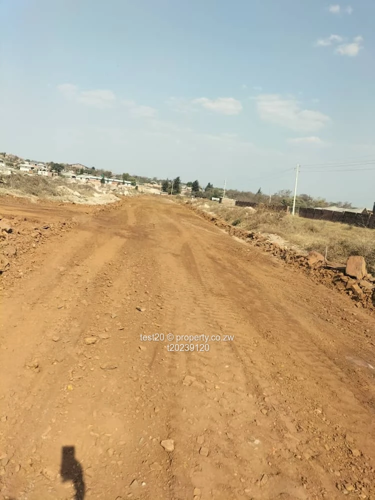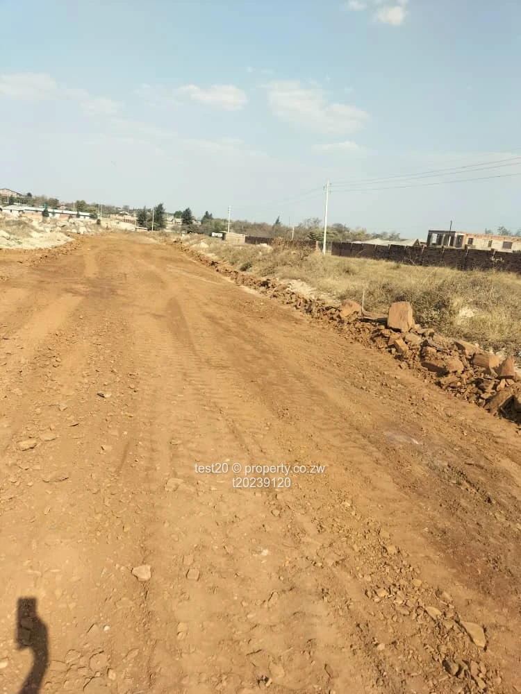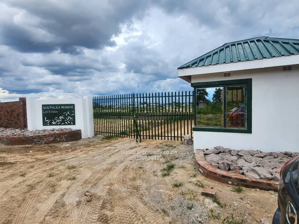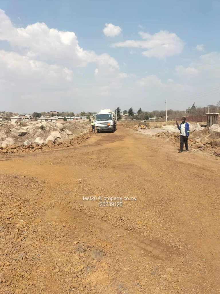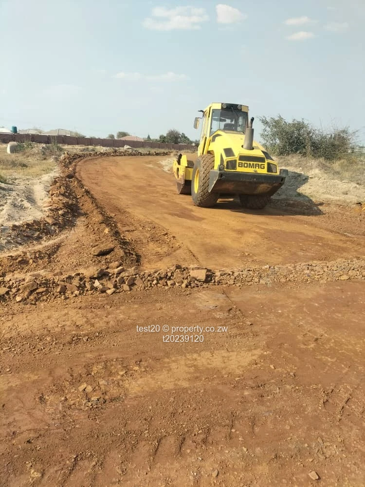Prime opportunity in Southlea Manner {Southlea Park}, Harare South — a serviced 200 m² residential stand in the emerging Southlea Manner development. The gated estate entrance and guard hut shown in the photos give immediate curb appeal and a sense of security. Municipal water and a sewer system are available on site, and the images show electricity poles nearby ready for connection. Gravel roads are being professionally graded (photos show the road roller and ongoing roadworks), giving you well-laid access to your plot and a solid foundation for future tar or paving.