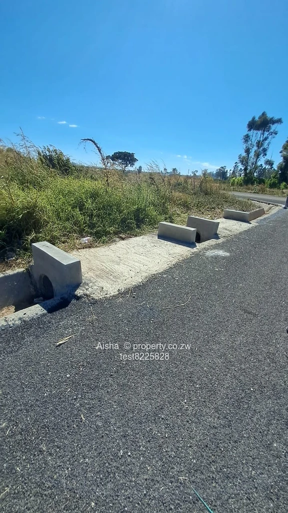 Prime Ruwa residential stand ready for development in Mashonaland East. This neatly prepared parcel sits on well-laid tarred roads with freshly painted black-and-white kerbs and a defined turning circle, giving an immediate sense of curb appeal and easy vehicular access. Paved stormwater channels and concrete culverts are visible on-site, and a municipal sewer system has been installed — essential infrastructure already in place so you can build without delay. The stand is surrounded by open, gently rolling grassland offering clear, unobstructed views and a tranquil suburban setting while remaining convenient to Ruwa’s amenities. Ideal for a family home or as an investment in a growing neighbourhood, this plot presents a rare opportunity to secure serviced land where roadworks, drainage and sewer connections have been completed. Land area listed as 400sqm - 510sqm. Contact us today to arrange a site visit and start planning your new home in Ruwa.