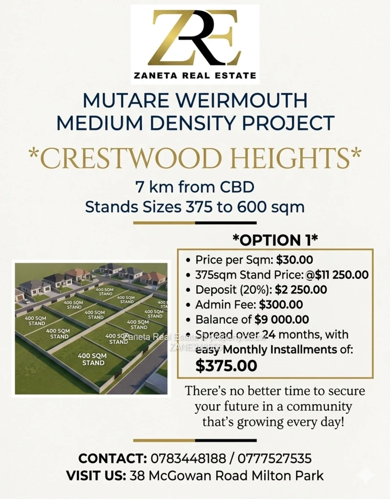 Mutare Weirmouth Medium Density Project. *Crestwood Heights*