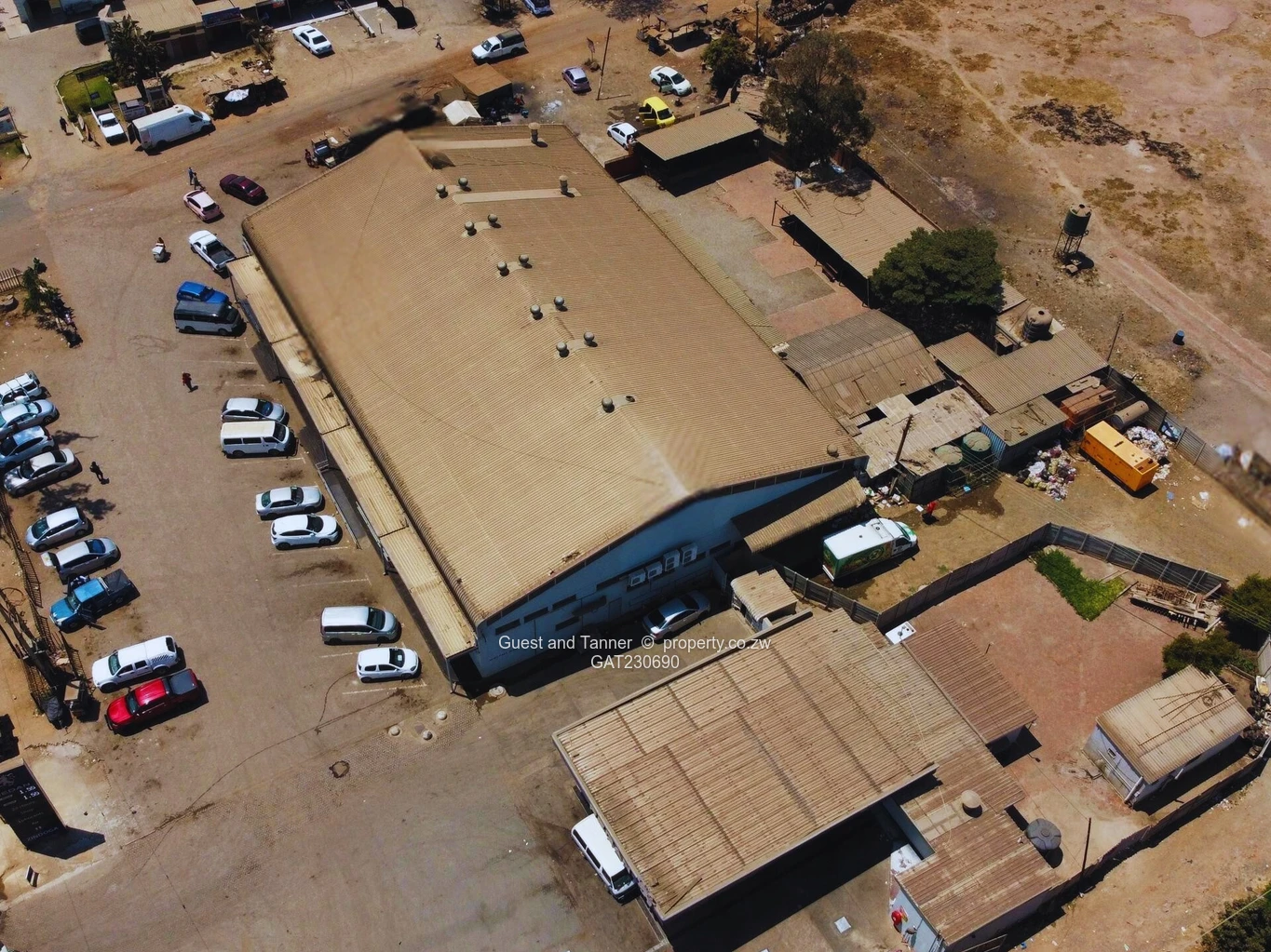 The property comprises 1,176 square metres of built-up space on a 1,438 square metre stand. It features spacious retail areas, ancillary offices, cold rooms, freezers, a locker room, butchery, canteen, and ablution facilities.