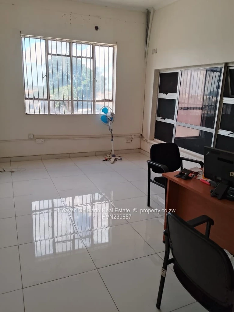A surrounding mezzanine level houses well-appointed offices, reception and meeting rooms, along with executive lounge areas fitted with air-conditioning. Staff facilities and ablutions are provided, while secure access is ensured via a gated side entrance and controlled stairwell. A large front balcony overlooks a busy arterial road, creating valuable branding and signage opportunities.