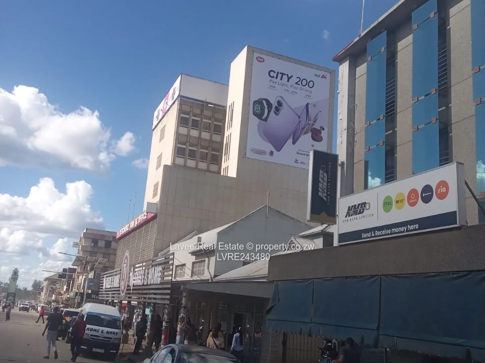 Prime commercial opportunity in the heart of Gweru CBD — a prominent Shop & Retail property on a 571 m² stand with 500 m² of built-up space. This imposing multi-storey building features a distinctive metal mesh façade and high-visibility branding already occupied by established names (Teecherz Home & Office, TV Sales & Home) and a large billboard tower — delivering exceptional street exposure and constant pedestrian and transport traffic visible in the photos. Ground-floor retail units with wide shopfronts, upper-level office/retail potential, and a practical carport for customer and staff parking. The property benefits from 24-hour security and air-conditioned interiors, making it ready for retail, showroom, bank branch, or mixed-use redevelopment. Ideal for investors seeking immediate rental income and premium CBD positioning in Midlands Province — rare, high-footfall asset in Gweru’s main commercial spine. Contact now to arrange viewing and financials.