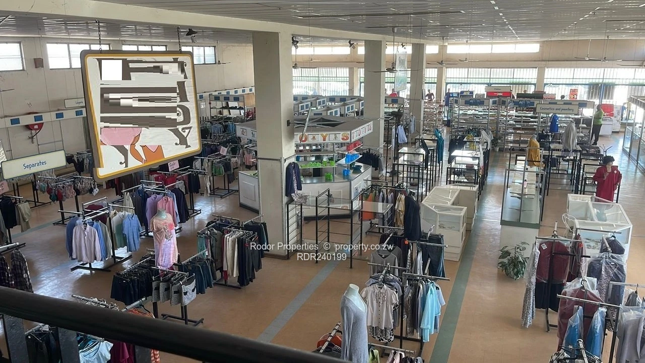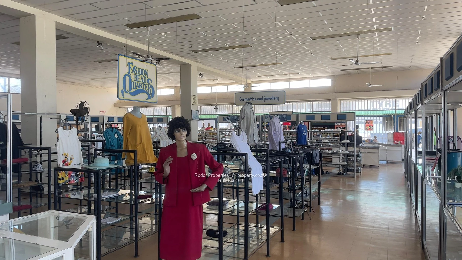 4. 950. Nine Hundred and Fifty Thousand. Stand size 1665 square metres. The property has vehicular access on a main street, and is a corner stand. The main building is a double storey. The ground floor accommodates a large retail area complete with seven fitting rooms, shoe storeroom, private manager’s office, an outfitting department. Upstairs, the first floor is designed for business operations, featuring 13 offices, a boardroom, three storerooms, a strongroom, a cashier’s office, and a welcoming reception with a lounge area. Staff and clients enjoy the convenience of separate restrooms, while three air conditioners ensure comfort throughout. This level also houses a restaurant with its own kitchen and an inviting rooftop deck, ideal for dining or entertaining. The main building is about 1600sm if we include both levels. The property has workshops covering about 310 sm