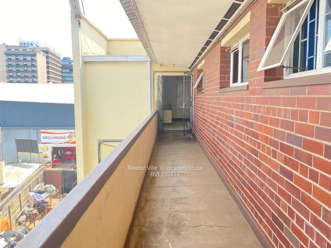 Prime investment opportunity in the heart of Harare CBD — a solidly built Shop & Retail property on an 1,800 m² stand with 800 m² of usable building. Located on a busy Harare City Centre strip, the property commands exceptional daytime footfall and street visibility (see photos showing the Weydon Centre frontage with multiple branded awnings and active shopfronts). The ground floor offers ten lockable retail units with direct street access and sheltered awnings, ideal for groceries, takeaways, cash & carry or kiosks. The upper level features of the 1st floor has a total of six retail/ office spaces and the second floor has 3 suites with a continuous covered balcony corridor with brick-clad walls, secure steel gates and tiled stair access — perfect for offices, showrooms or additional retail tenancy (photos show the wide balcony walkway, security gates and mounted fire reel).