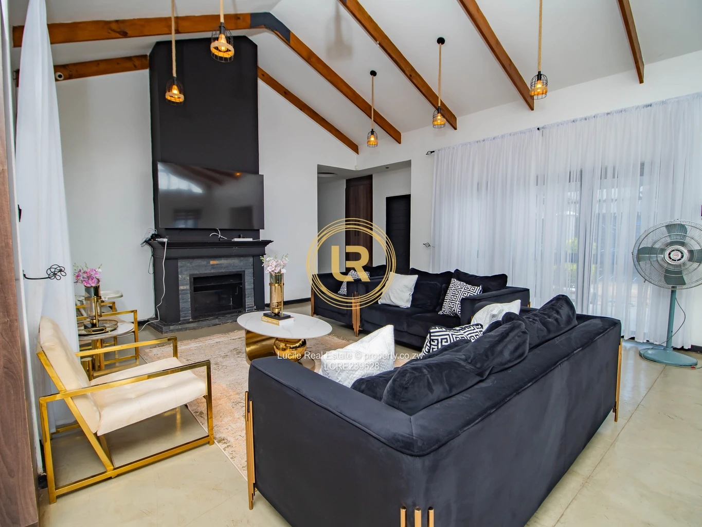 Modern and spacious townhouse featuring an open-plan kitchen and lounge with a fireplace, complemented by a pantry and scullery.