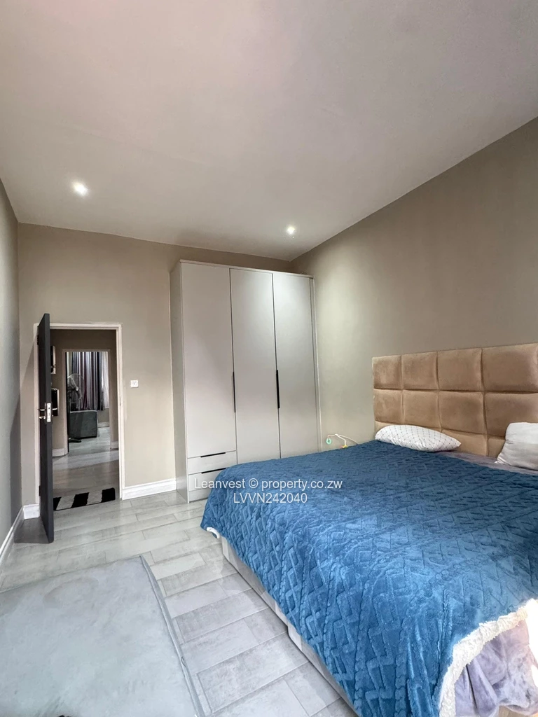 Master bedroom with ensuite, open plan lounge dining and kitchen, veranda overlooking a good size well manicures garden, 5kva solar backup system and a solar geyser in a gated community with 24hour security. Borehole + 5000l tank