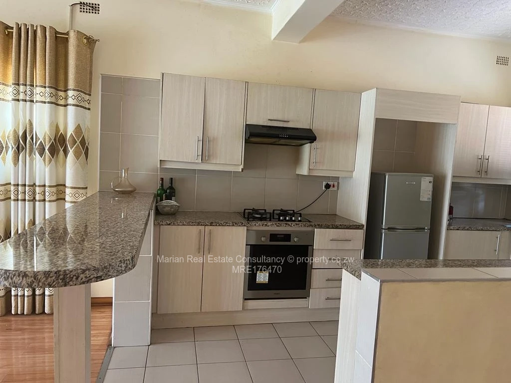 This immaculate home, with uninterrupted views, is awaiting the investor looking for a great executive home. On entering, there is a beautiful water feature with sky light and the stairway leads you up to the living area. Main lounge with granite rock featuring and lots of natural light flooding in, concertina doors lead out onto the wrap around balcony veranda with spectacular views of Bulawayo. A level down from the lounge is a decent sized dining room with glass doors leading out on to the veranda. Fitted kitchen with gas hob and double electric oven, a breakfast nook, separate scullery and pantry. Along the passage is a TV lounge and guest toilet with basin. Main bedroom has its own private balcony, with tree top views, walk in dressing room and large bathroom with double basins, bath, toilet, shower and bidet. Second bedroom has built in cupboards and third bedroom is curr...