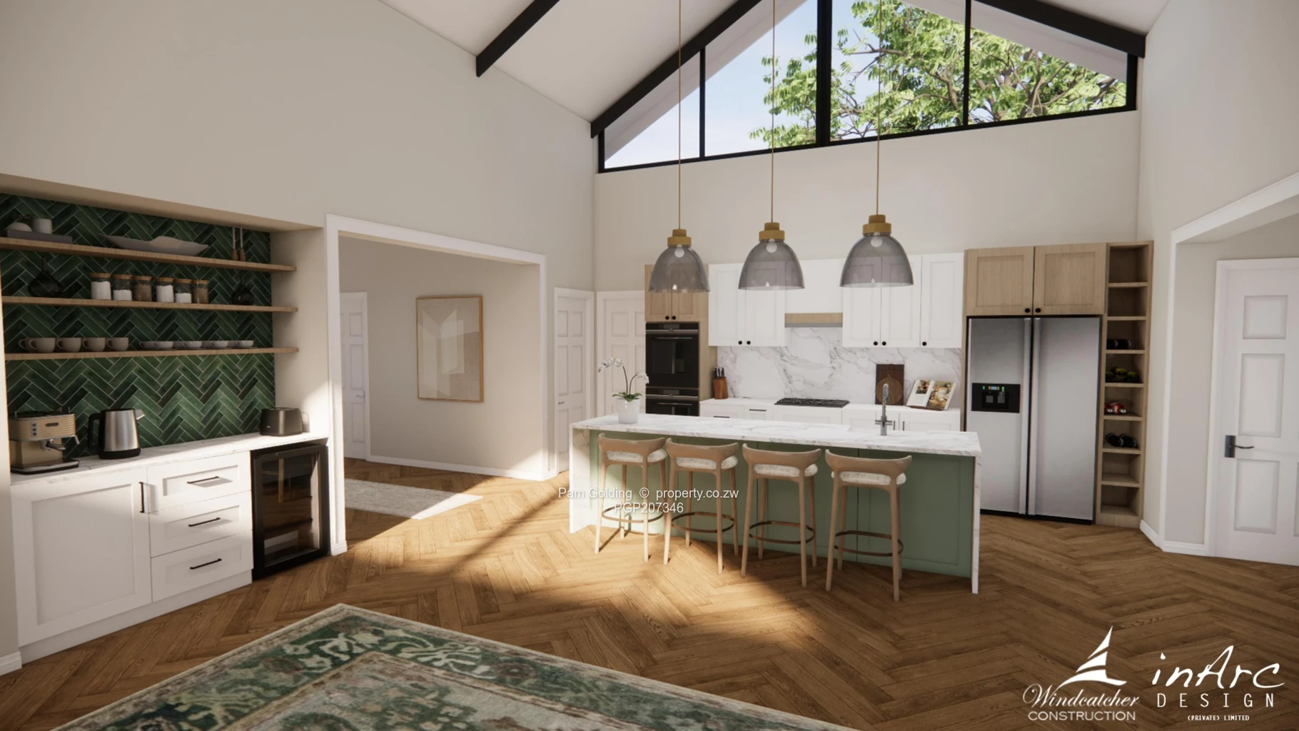 Thoughtful amenities and systems are placed throughout the estate. Four boreholes will service the complex. Additionally, stormwater will be collected and stored in a 3.4 million-litre rainwater capture dam, which will provide water for gardens and a bulk store of water to supplement the borehole supply if necessary. All water pulled from the dam will be filtered and stored in a 240,000-liter holding tank. There will also be 120,000 litres of borehole water storage at the top of the property.