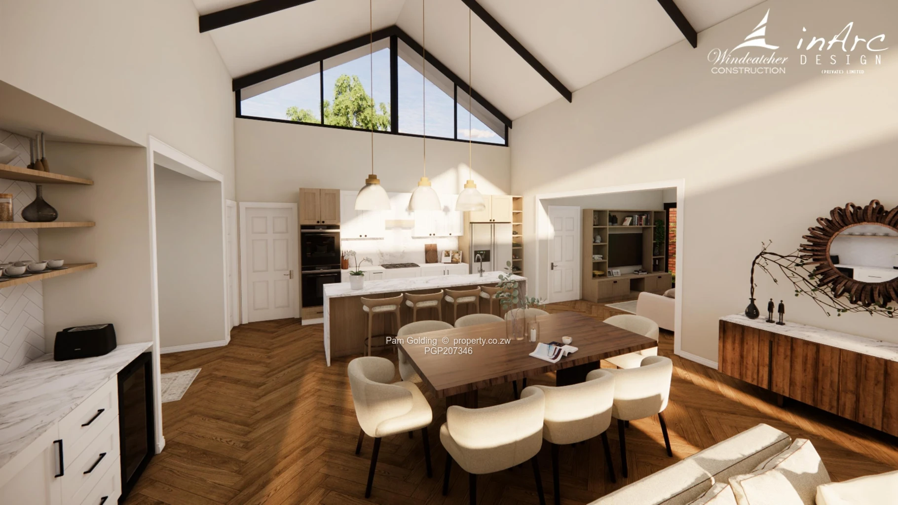 The guest room leads off the second TV lounge and will also have a sliding door leading to the garden and an en-suite with a shower, toilet, and basin.