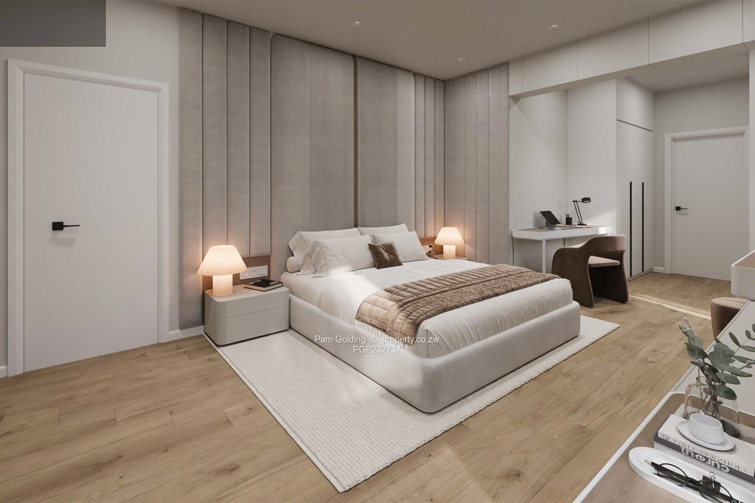 Upstairs, the first-floor features two spacious ensuite bedrooms, including a luxurious master suite with a walk-in closet. A pyjama lounge and a private rooftop terrace offer additional comfort and leisure space. With sectional title ownership and a 500 m land share per unit, this development is ideal for discerning homeowners or investors seeking long-term value. Completion is anticipated for July 2026, with flexible payment plans available.
