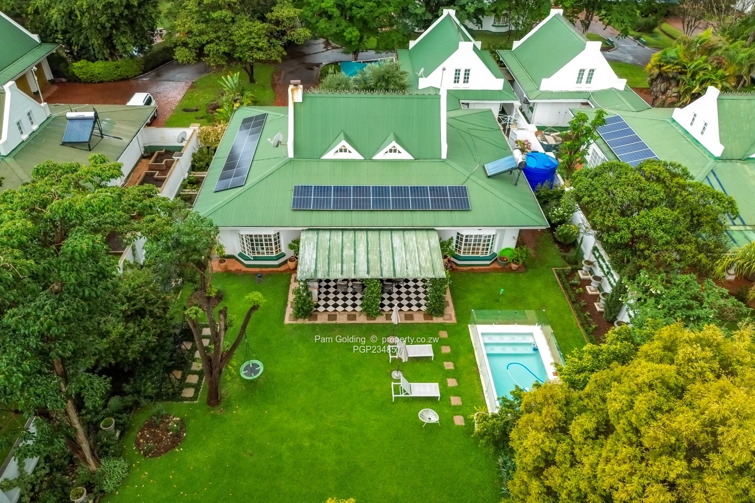 Additional features include a double lock-up garage with a loft, a complex borehole supplying each unit, water storage tanks, a 10 kva solar power system, and solar/electric geysers.