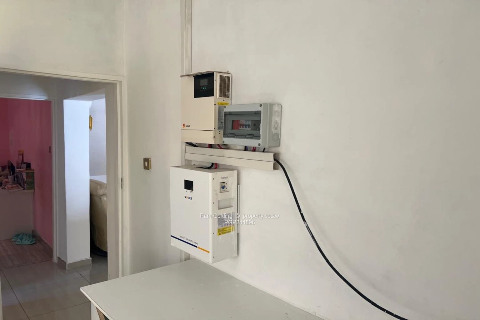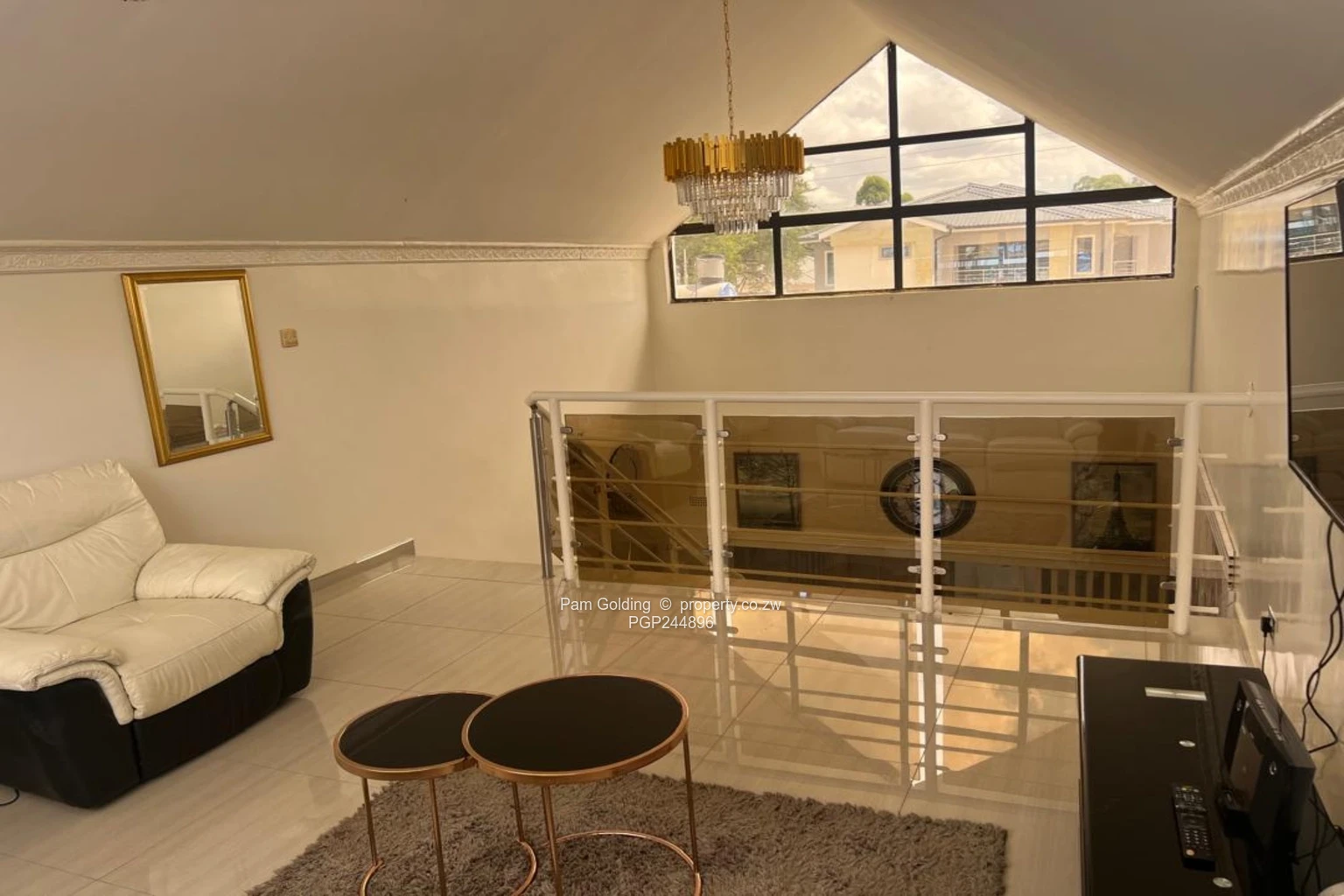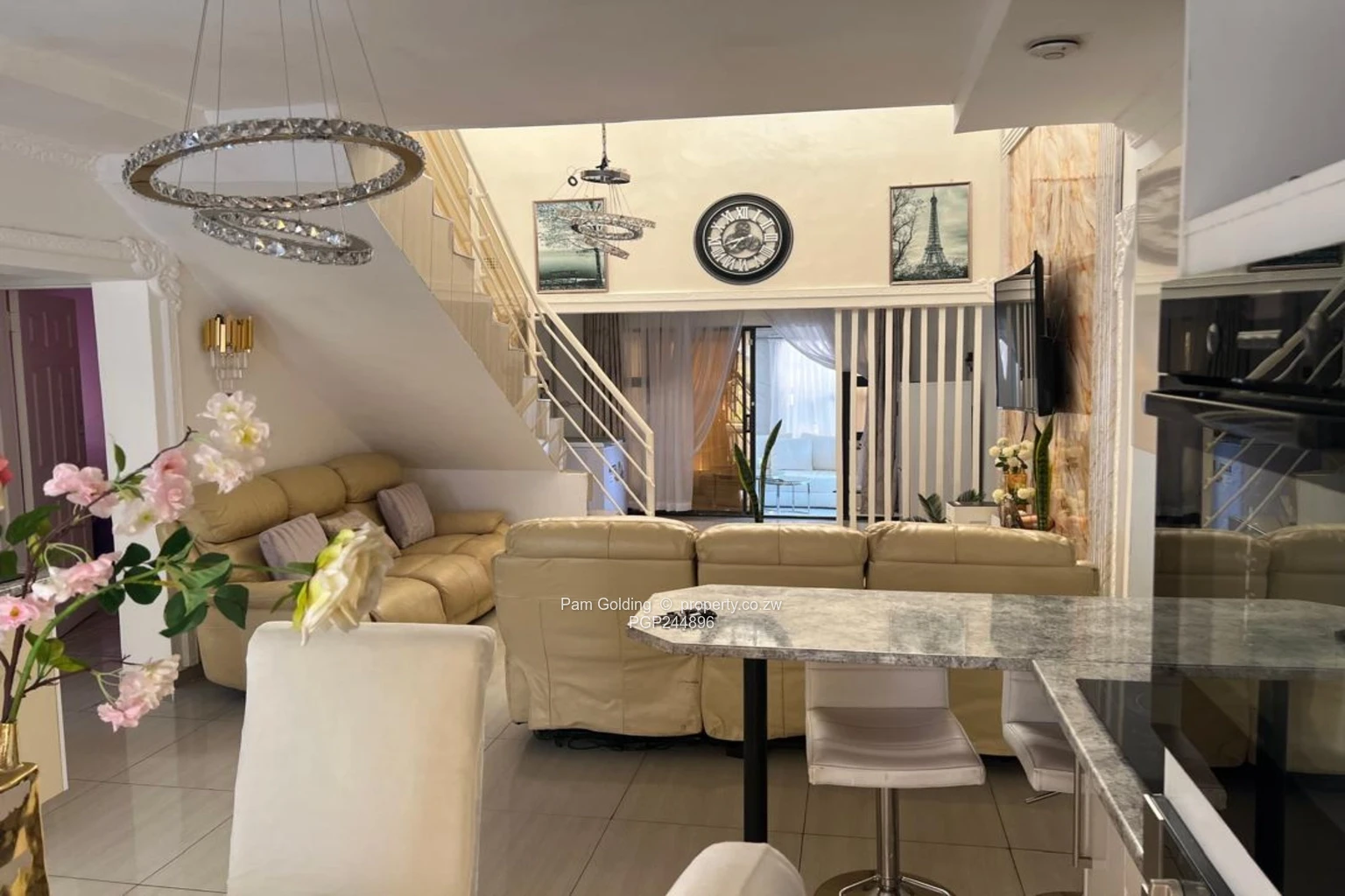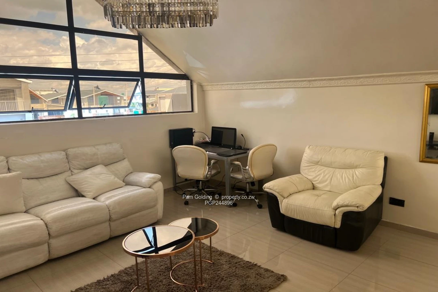 Three bedrooms plus a study, two bathrooms, open plan kitchen, main lounge and separate sun lounge, loft converted into a second lounge cum office. 3KVA solar system. Modern fittings all round. The exterior has double carport and a braai area. Communal borehole. All sitting on 452 sqm of land