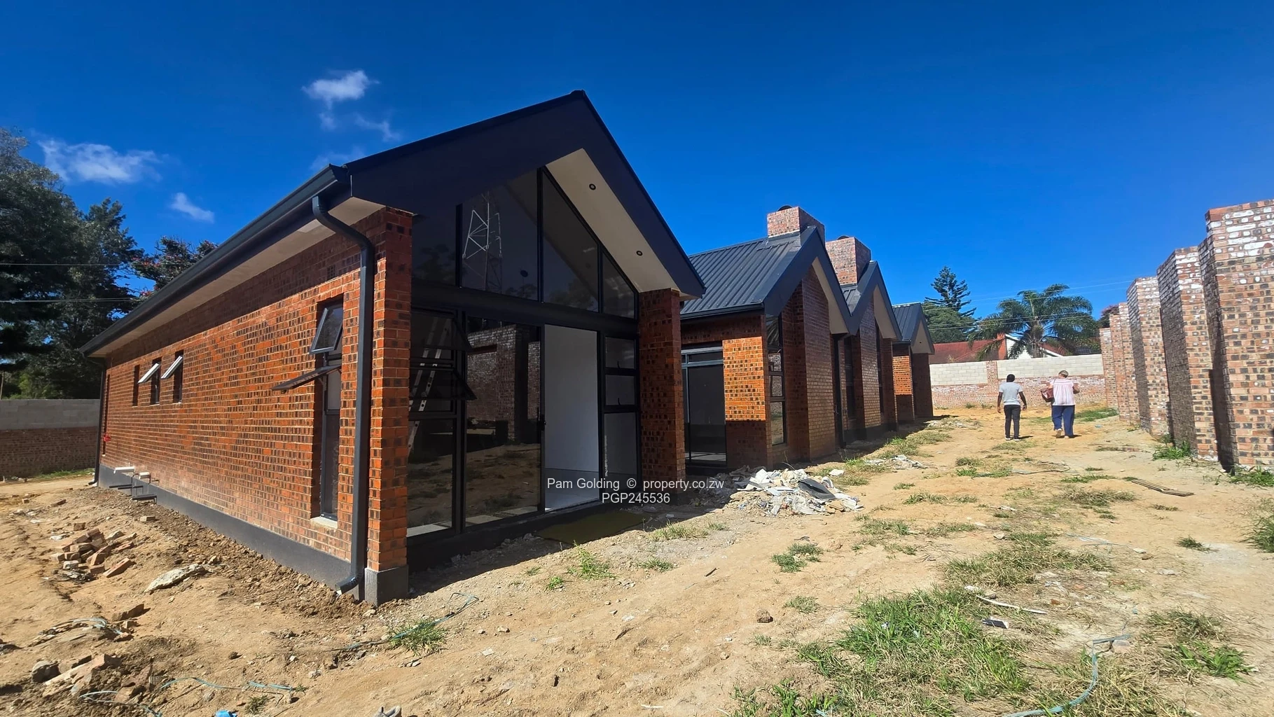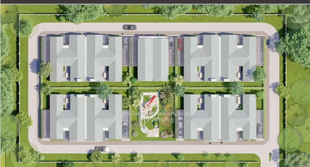 Each unit features a bright and airy open-plan layout, combining the lounge, (with a fireplace), dining and and sleek fitted kitchen. The 3 bedrooms are well-proportioned with built-in cupboards, 2 of the bedrooms have an en-suite bathroom and you will find a third bathroom. They come fitted with a water meter (Council), Zesa meter and a 5 000 litre water tank of borehole water. The levy to be set will be low possibly just for security and garden services. There is also a double electric garage with a door into the house for added security.
