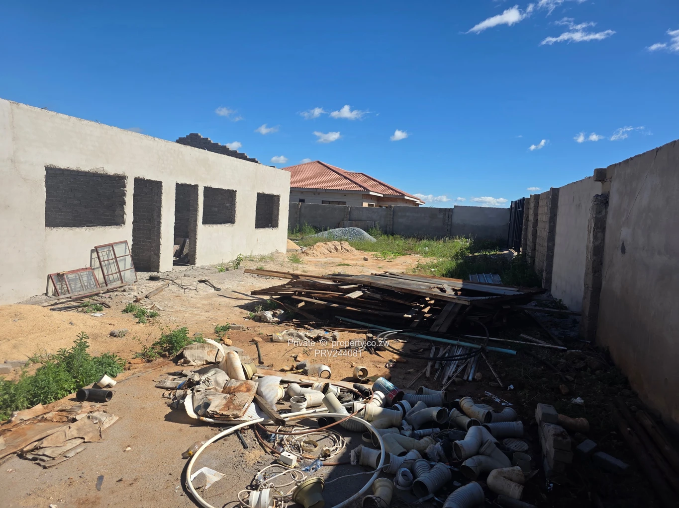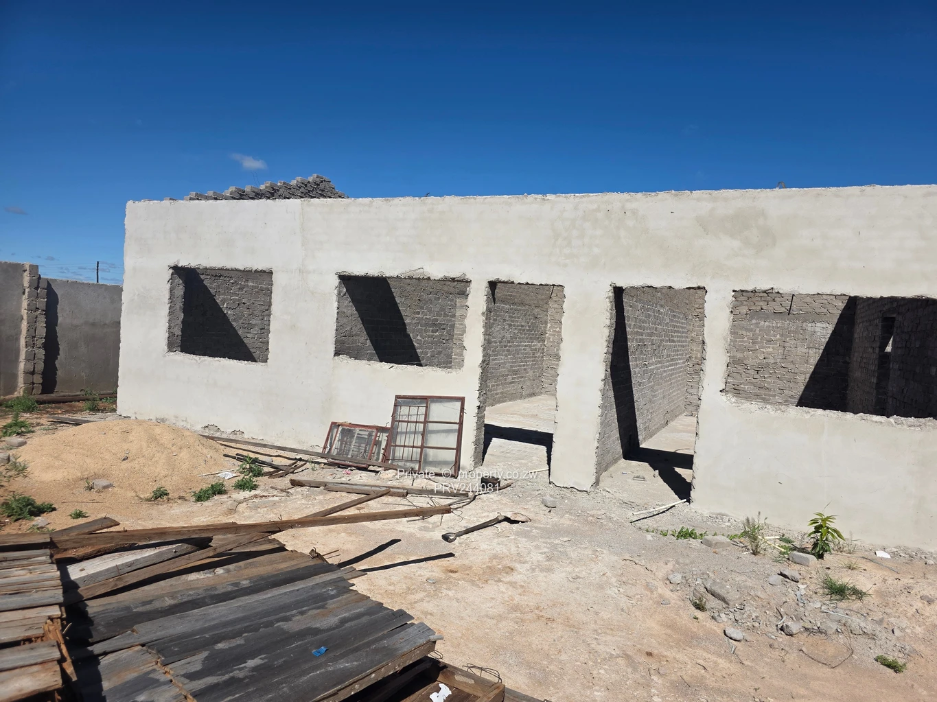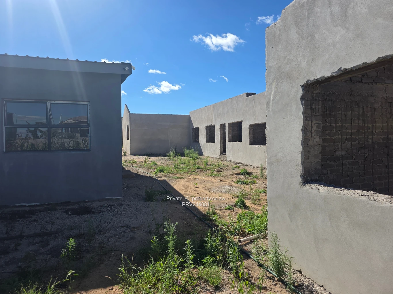 Exceptional investment opportunity in Clipsham, Masvingo: a partially built 16-bedroom, 10-bathroom townhouse complex built to roof level on a secure 1,500 m² stand with 485 m² of built area and its own borehole. The property features a single-storey block of 6 partially finished units with clean plastered external walls and window openings ready for final fittings, a separate completed 2 bedroom outbuilding complete with office and laundry room, guest toilet, built-in cupboards on all the bedrooms, office and laundry room, fitted open plan kitchen and dining and a fully walled perimeter offering privacy and security. The yard is level with ample space for parking, landscaping or future expansion with practical access from the main road. With competed external wall plastering, this development offers strong value for an investor or builder to complete and customise finishes to market demand. The borehole ensures reliable water supply—an important advantage for tenants and operational costs. Ideal for rental portfolio growth, student housing, or a gated-townhouse conversion, this complex sits in an established Clipsham neighbourhood in Masvingo Province, close to everyday amenities and commuter routes. Don’t miss a chance to finish and capitalise on this well-positioned property with immediate rental potential. Contact us today to arrange a viewing and receive full construction and title details.