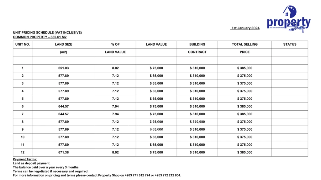 Following a successful sale and completion of units in two other complexes, Property Shop is excited to present an upmarket residential development off Edinburgh Road Vainona. This complex with a fusion of modern and traditional architectural styles, comprises of 12 elegantly arranged units ranging from 577.89sqm to 671.38sqm.