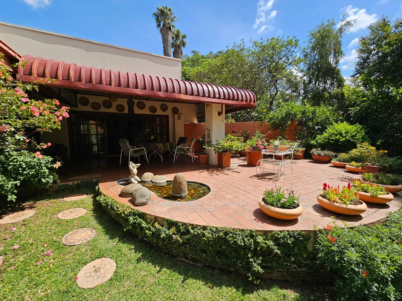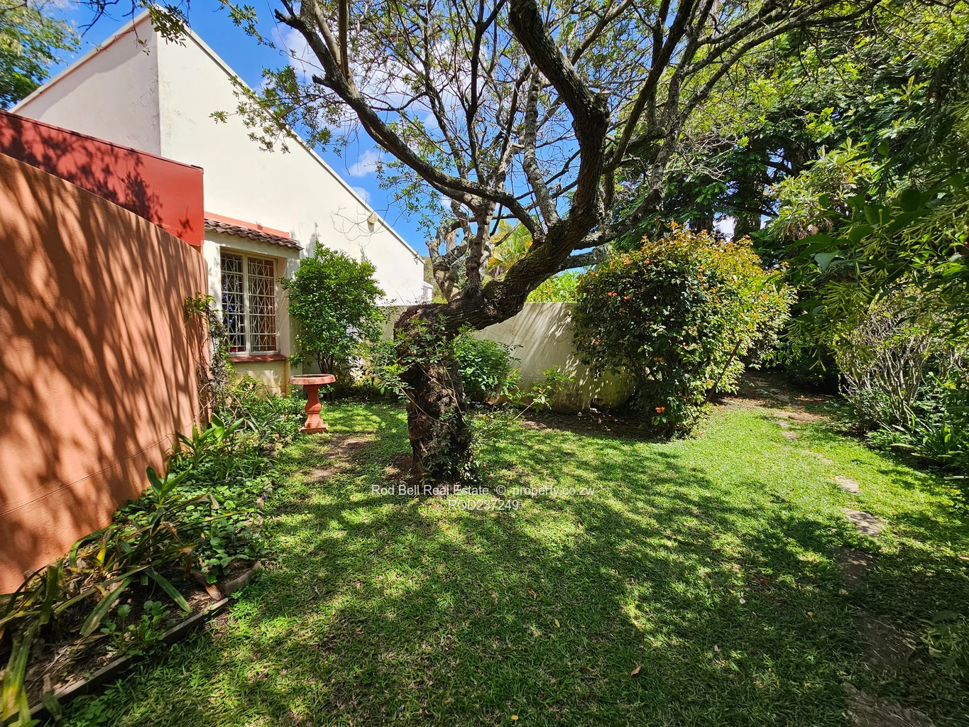 This free standing 3-bedroom townhouse is within a well-established neighborhood and complex. In this park like setting, with mature trees and garden, there are 11 units in total, not your typical complex, units have plenty of garden and privacy, this unit is sitting on 2000m2. The unit comprises of 2 bathrooms, one ensuite, 2 lounges, with an open plan dining room and large fitted kitchen which opens up into a courtyard. The lounge leads on to a verandah and into a spacious garden. There is a double lock up garage and double shade port and single staff quarters. There is a 3kva solar system with 6 solar panels and 12000l water tank storage