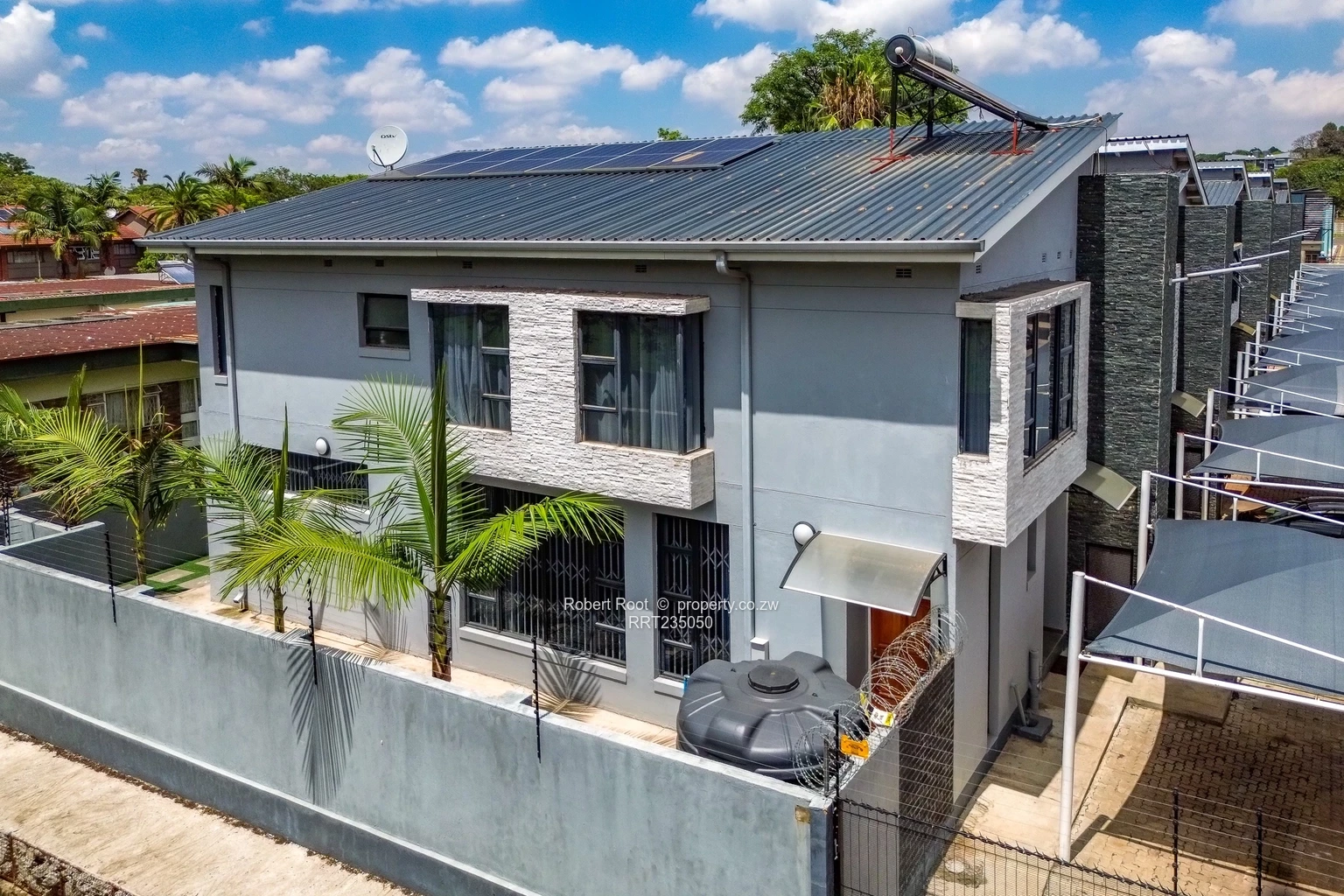Modern townhouse for sale in Avondale — an investment opportunity or family residence offering style, security and convenience. The unit is modern and elegant. An open-plan living and dining area with abundant natural light, a fully fitted kitchen with breakfast island and tiled floors throughout. Bedrooms feature built-in wardrobes; the three bathrooms are modern, one finished with a freestanding bath and elegant vanity. The property also features a reliable borehole, two secure covered parkings for each unit and easy-to-maintain communal spaces. It comes with 5KVa Solar System as well as a personal 5000L water tank. Perfect for investors seeking immediate rental income (well recommended tenant in occupation) or families wanting a ready-to-move-in lock up and go home in Avondale. The complex presents clean exteriors with covered carports and a secure perimeter; a neat central driveway and low-maintenance landscaped courtyards. Contact us for a viewing.