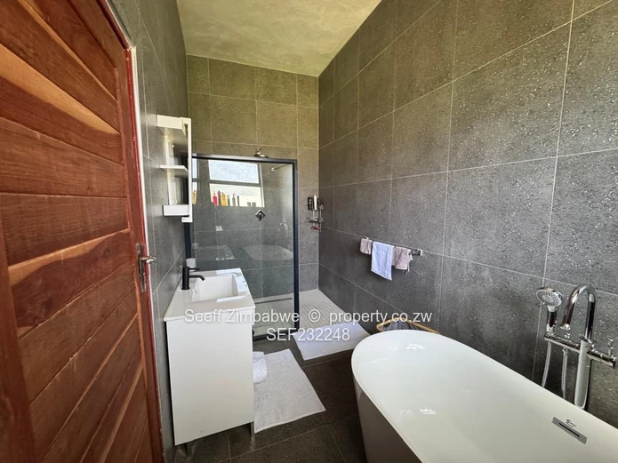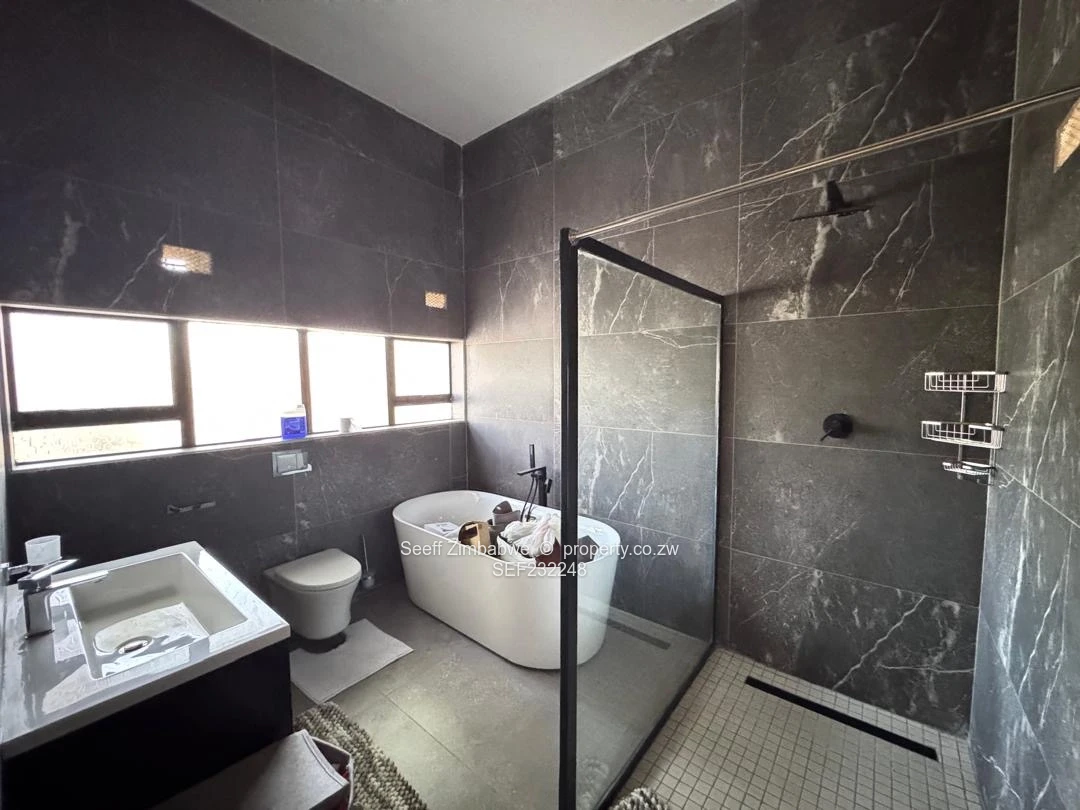 A hidden gem in a quiet Cul-de-suc in Quinnington in a complex with 4 upmarket units, this is a rare find. Property comes with 3 bedrooms all en-suite, main bedroom with a dressing area. Guest bathroom, Modern fitted kitchen open plan with the dining room and lounge, opening onto the veranda. Second lounge with suspended wooden floors opening onto the veranda. Tiled entertainment area onto a sparkling pool. communal borehole. Double Domestic accommodation. Located close to amenities like good private schools, private hospitals, shopping centres, and restaurants yet far from the hustle and bustle of city living. This is am ideal home for a growing family or for a retirement home for empty nesters. Call me today to book your private viewing.