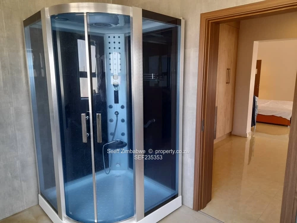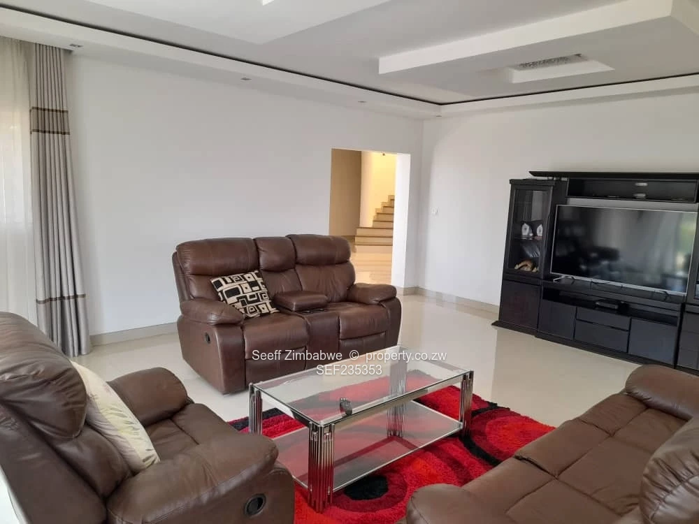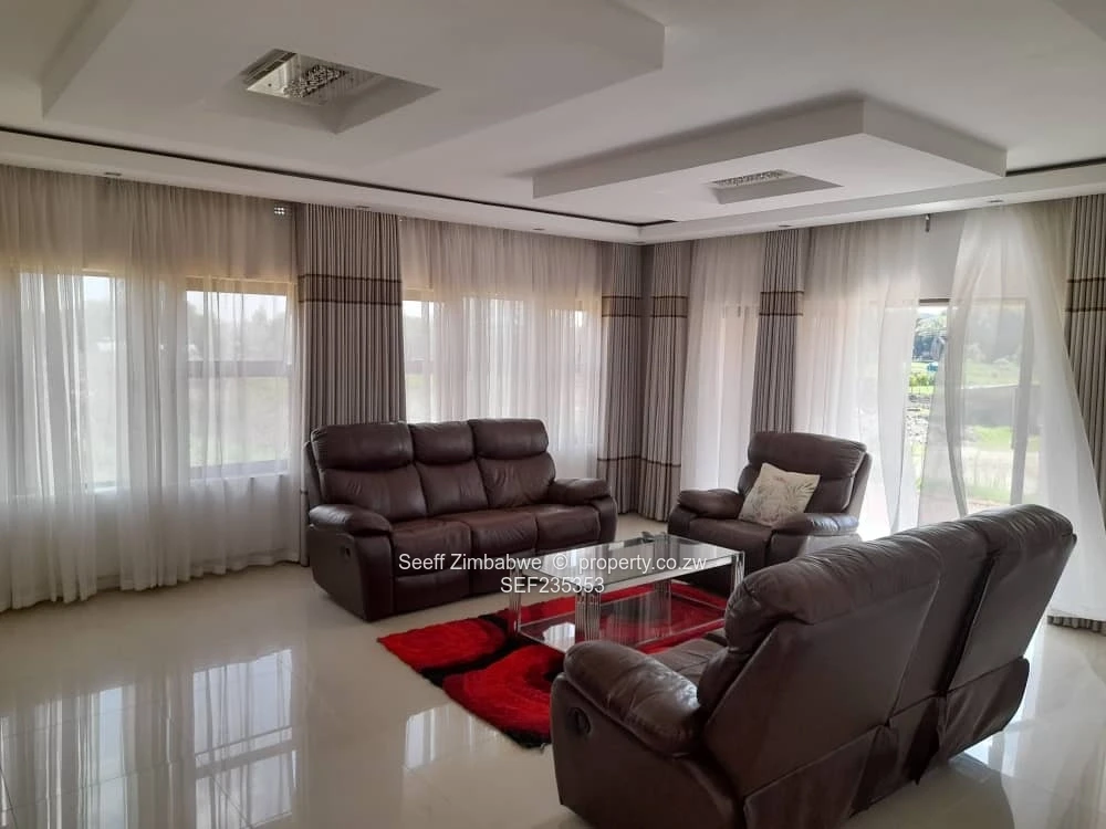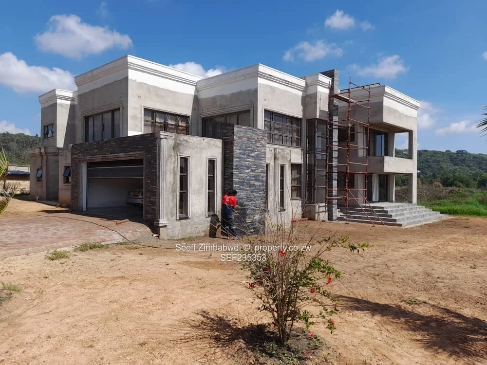 Discover unparalleled elegance in this brand new, luxurious 6-bedroom, double-storey cluster home nestled within the secure Tendara Homes on Armthwaite Road, Quinnington, Borrowdale, offering a prime location with close proximity to Heritage School. The property immediately impresses with its captivating skyline roof and an inviting entrance hall, setting the tone for the modern luxury inside. Designed for supreme comfort and entertainment, the home features three distinct lounges and a separate, striking dining room with double-volume ceilings. The gourmet kitchen is fully fitted and includes a pantry, scullery, and dedicated laundry room. Six spacious bedrooms offer generous accommodation, including the breathtaking master suite which boasts a dedicated walk-in closet and a lavish en-suite bathroom fitted with a shower, relaxing tub, and double basin. The first floor hosts three bedrooms, each enjoying a private balcony and scenic views, while four bedrooms feature built-in cupboards and share two well-appointed, interconnecting family bathrooms. Practicality is enhanced with a separate study and office, a ground-floor guest bathroom (complete with tub, double basin, and shower), and attached staff quarters featuring built-in cupboards and its own shower, toilet, and basin. This home is future-ready and sustainable, equipped with an 8kVA solar system and a solar geyser for energy efficiency, complemented by a 5,000-litre water tank for reliability. The property comes with a double lock-up garage and sits on a spacious 1,000 square metre stand within a community that guarantees 24-hour security, reliable ZESA electricity, and communal boreholes. Ready for title deeds, this is an exceptional opportunity to secure a magnificent, modern home.