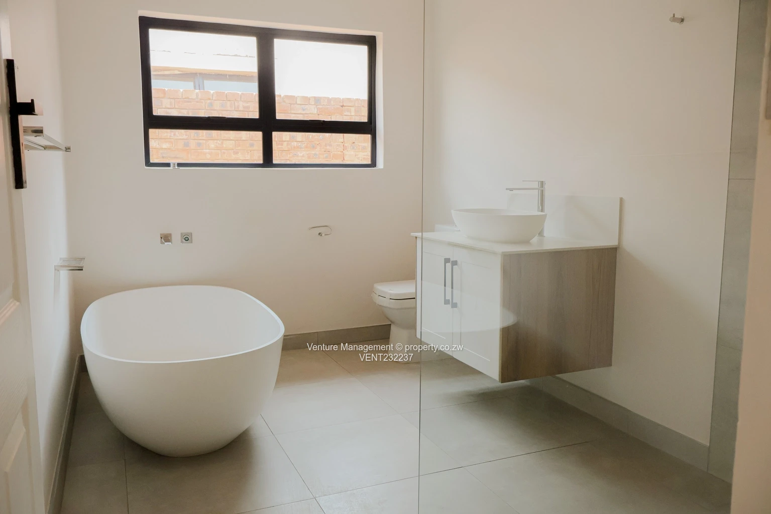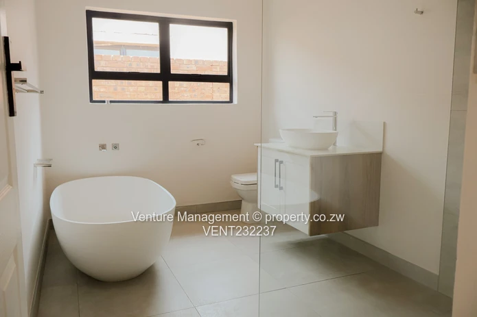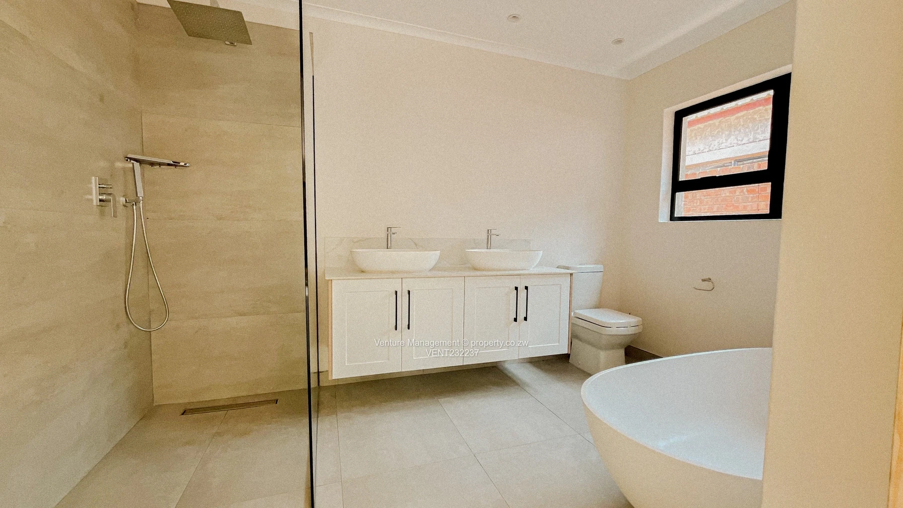The bathrooms are tastefully done with modern fittings, featuring a walk-in shower, double vanities and a freestanding bathtub