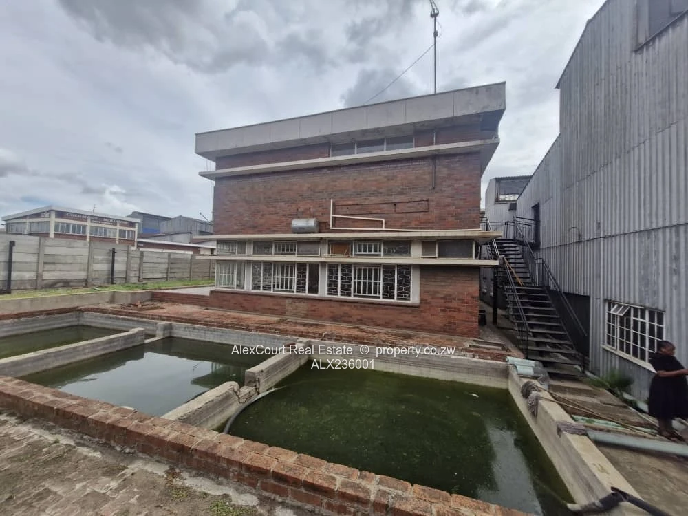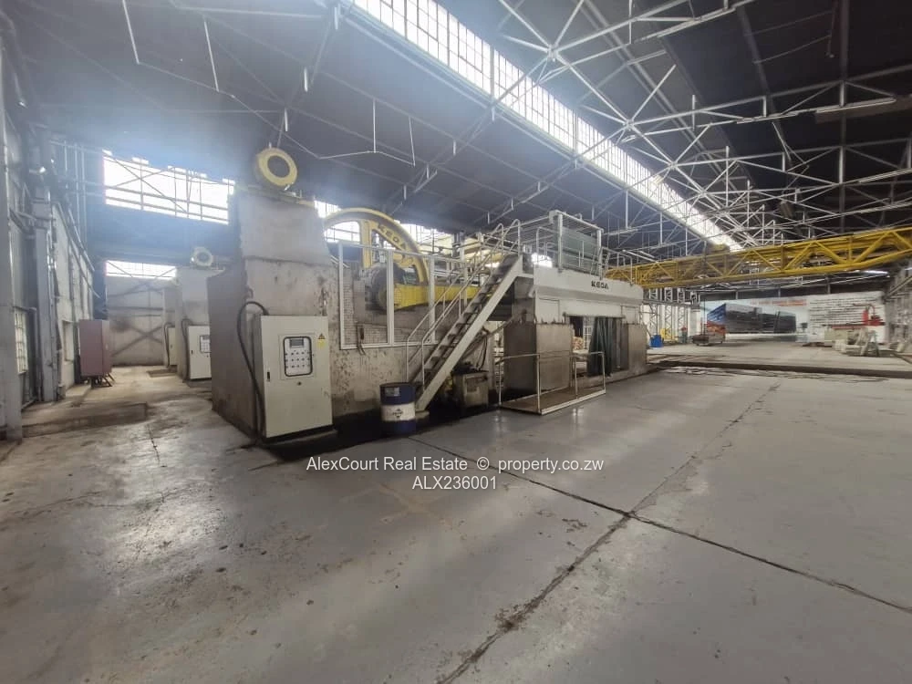 Solid industrial structures on 7437m2 which include: 1) Warehouse/ Workshop with several offices, boardroom, canteen, reception area and ablutions (4165 m2 gross area) 2) Double Storey office block with reception, several executive office- ensuite bathrooms, kitchen, dining rooms, kitchen bathrooms and toilets (830 m2 gross area) 3) Single Storey office block. 4) Ancillary improvements include water reservoir and treatment plant, rail siding, security wall and sliding/ swing gates