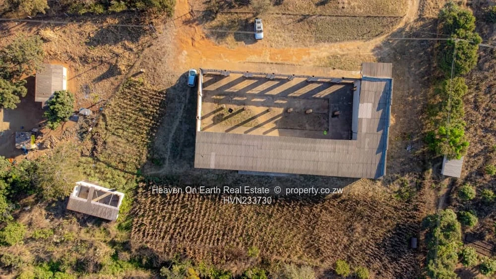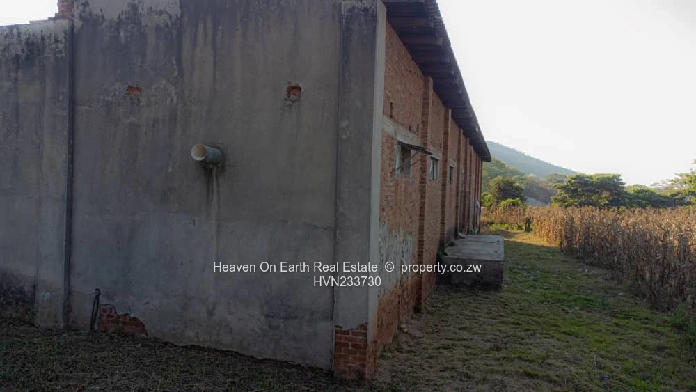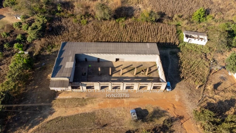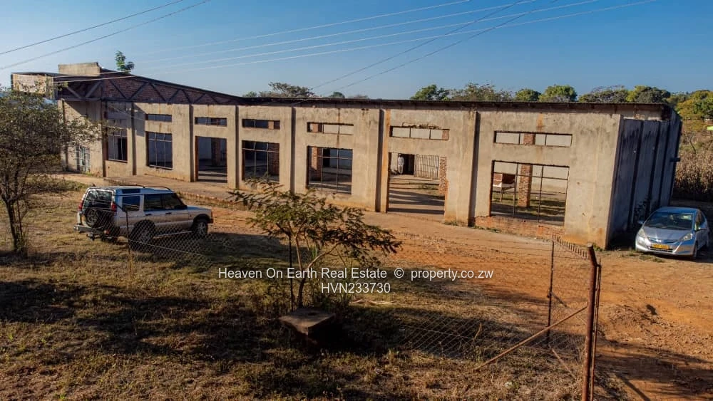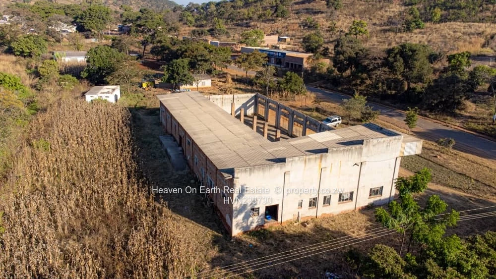 Warehouse & Factory for Sale — Concession, Mashonaland Central. Exceptional redevelopment opportunity on a 4,100 m² stand with a robust 1,080 m² concrete partly complete building. As seen in the photos, the structure forms a secure U-shaped compound with high concrete columns and an open central yard — ideal for secure storage, light manufacturing or an agro-processing hub. The building features large frontage openings for easy loading, a partially corrugated roof covering key bays, solid external walls and room for internal fit-out. External images show direct roadside access with power lines on site, a gated entrance and generous hardstand/parking space for trucks and vehicles. Property is well suited to value-adding ventures such as grain milling, manufacturing, warehousing, cold-room conversion, workshop, or logistics depot. The shell condition allows new owners to tailor finishes to their exact requirements, cutting build time and cost. Rarely available industrial footprint in Concession — strong potential for immediate operation or phased redevelopment. Features include the following: