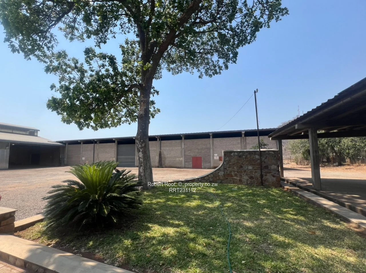Prime industrial opportunity in Chiredzi, Masvingo Province — a fully fenced warehouse on 9,630 m² with 2,600 m² of solid built space and 180 m² of office space. The property features a large, high-clearance corrugated steel warehouse with multiple roll-up doors and long loading aprons ideal for bulk storage,packing or light manufacturing. A sweeping gravel yard provides ample truck manoeuvring and parking, while covered carports and separate service bays enhance logistics flow. The well-presented single-level office block includes tiled floors, reception with a stone counter and bright windows overlooking landscaped lawns and mature trees — a professional entrance for staff and visitors. Municipal water is connected, and generous external hardstand areas allow easy expansion or segregation of production zones. Secure, versatile and turnkey-ready, this facility is perfectly placed for distribution, agriprocessing or manufacturing businesses seeking a strategic base in Chiredzi.