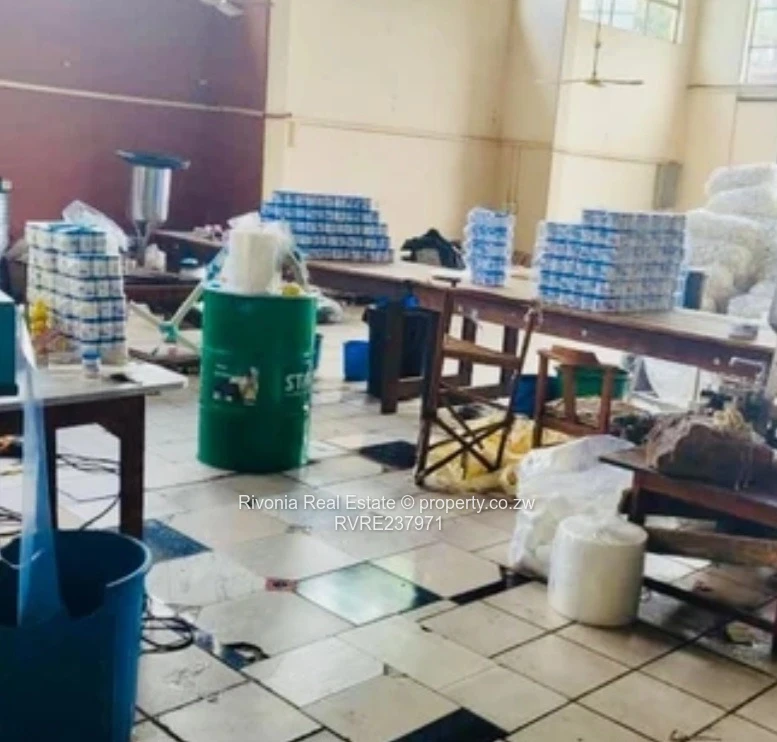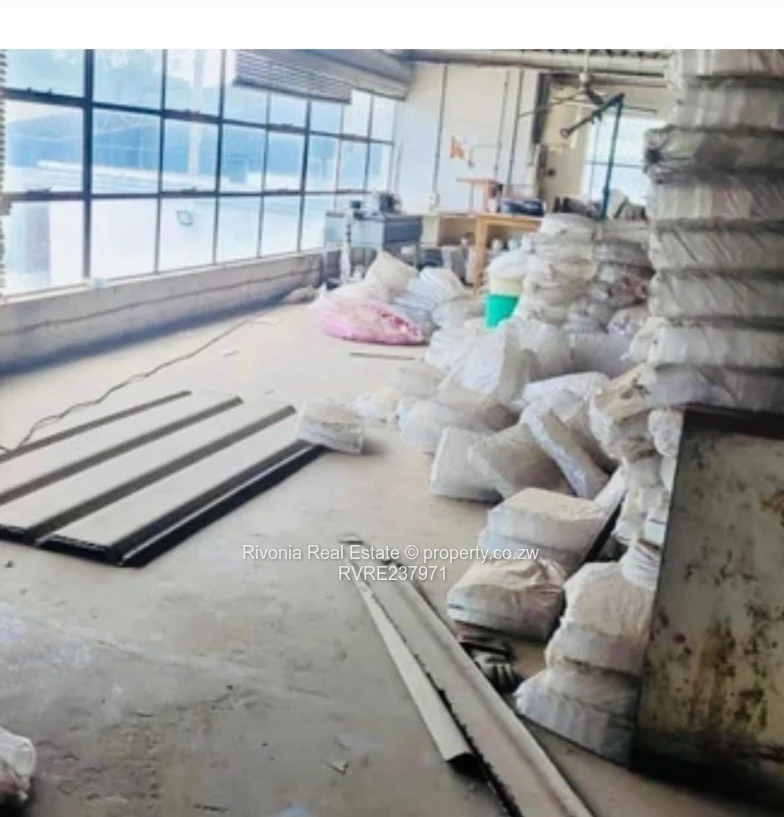 Msasa industrial warehouse ideal for warehousing, manufacturing, 250sqm lettable factory space, 60sqm mezzanine floor, 15sqm office and reception area with 3 ablution facilities, deeds @ 220k
