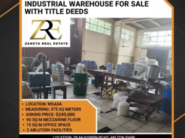 An exceptional opportunity to acquire a versatile industrial unit located in the highly sought-after Msasa industrial area. This property is perfectly suited for light manufacturing, secure warehousing, and distribution operations. Offering clean, spacious floor area complemented by essential administrative and staff amenities, this is a ready-to-occupy investment with clear title deeds.